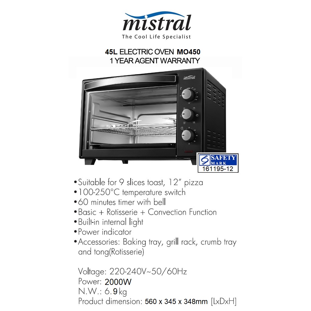 MISTRAL 45L BASIC + ROTISSERIE + CONVECTION ELECTRIC OVEN (MO450)