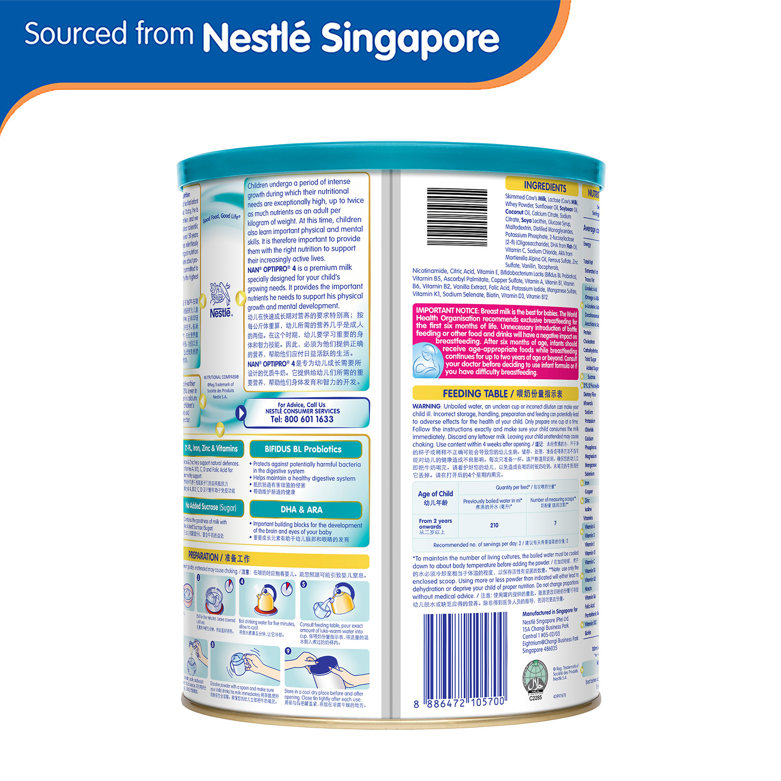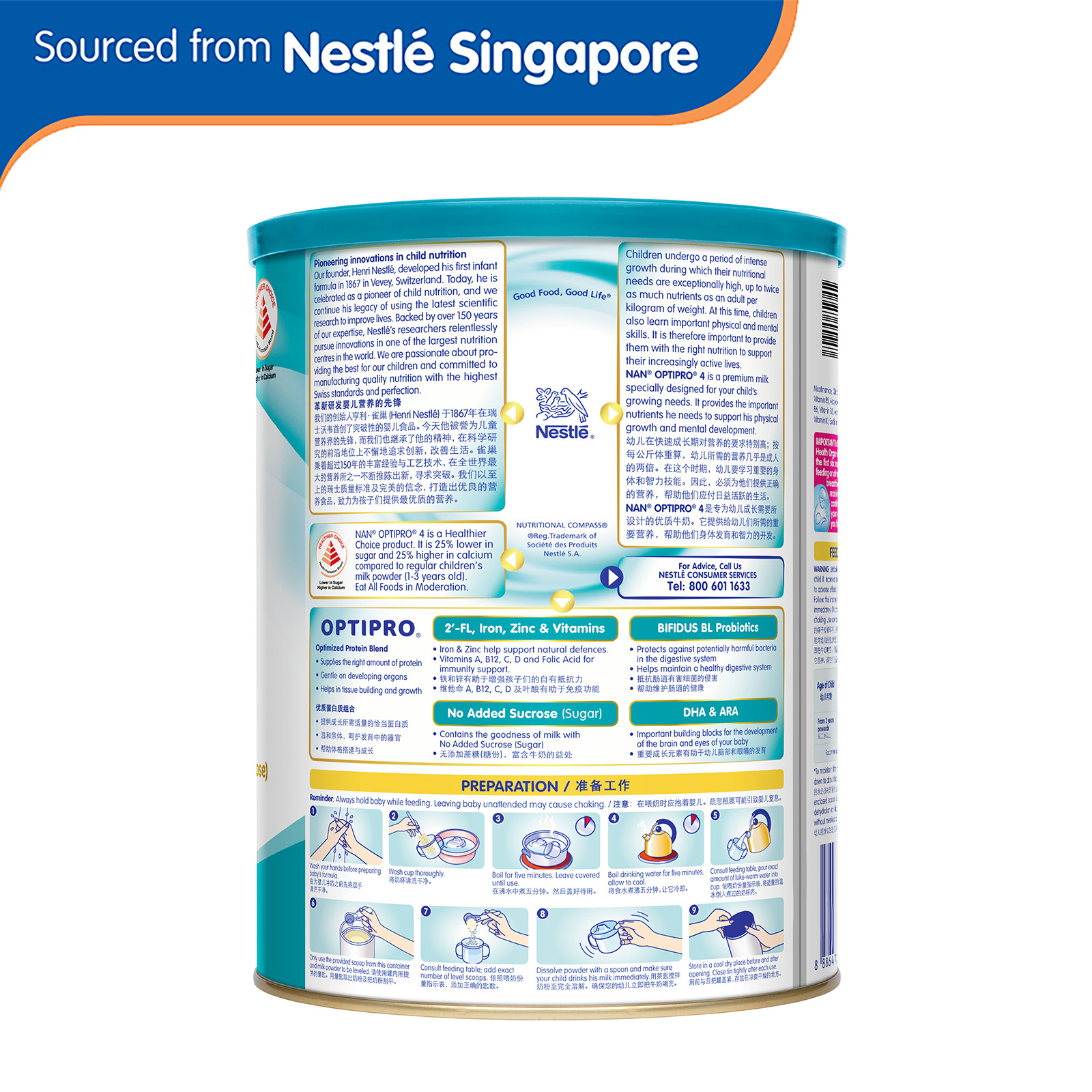 NAN® OPTIPRO® 4 is a Healthier Choice product. It is 25% lower in sugar and 25% higher in calcium than regular growing up milk.