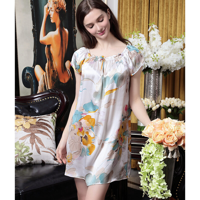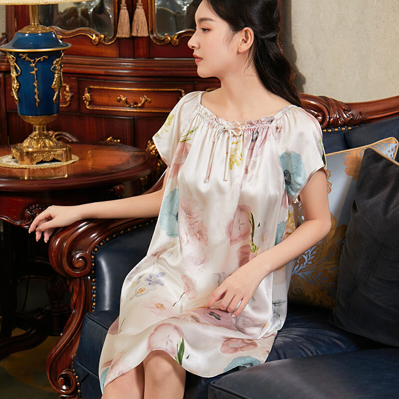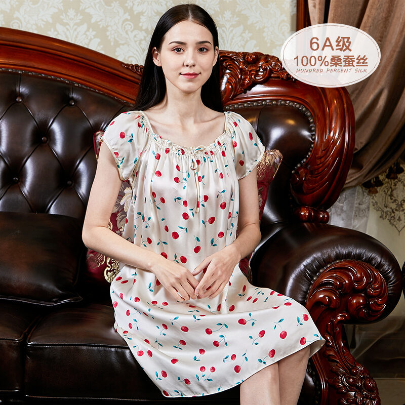 Silk Nightdress Women's 2023 New High-End 100 Silk Pajamas Summer Short-Sleeved Sexy Loose Homewear