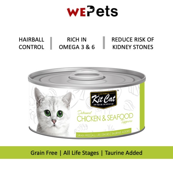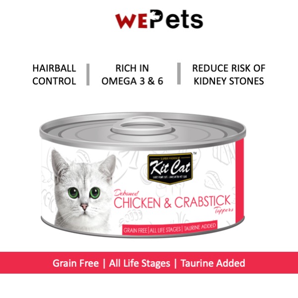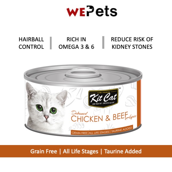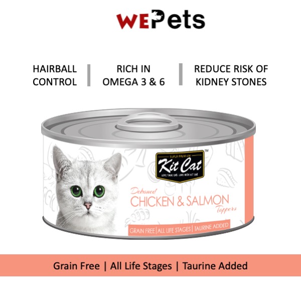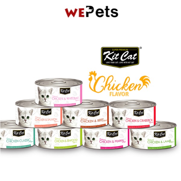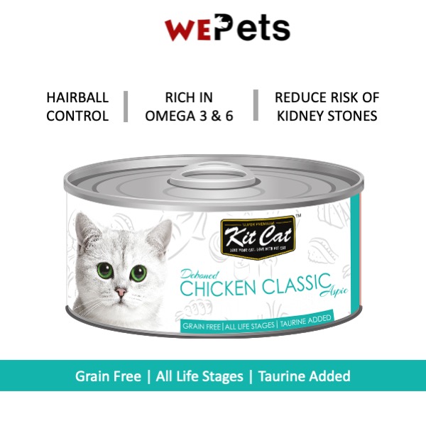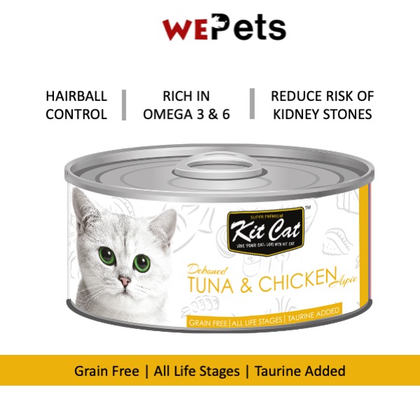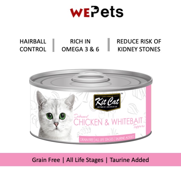 Kit Cat wet food was created by our nutritionists who are also cat lovers and made with the goodness of carefully selected natural ingredients which contains no added colours or preservatives. Our Kit Cat 100% grain free diet offers your cat a pH level balance wholesome nutrition to support a healthy lifestyle, reducing risk of kidney stones and urinary tract infection.
