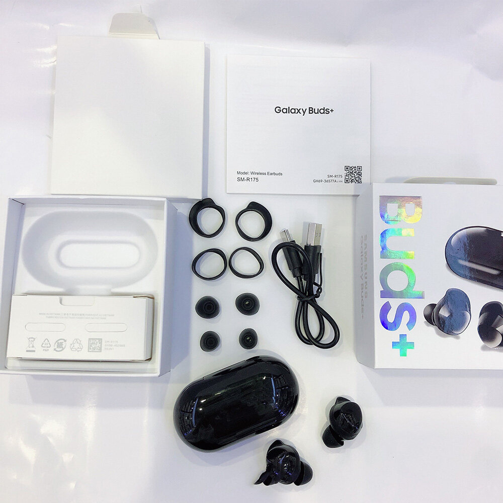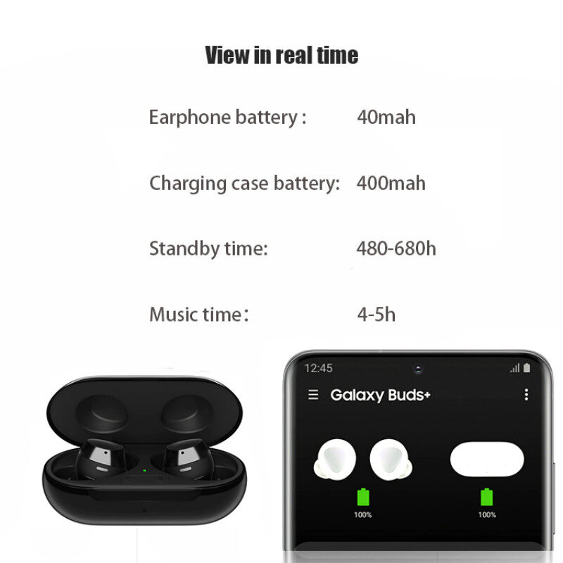 Application: Running,Sport,Working Compatible with: Samsung S10 iPhone,iPod, Android Mobile phone Frequency response: 20-20000Hz Impedance: 32ohms Sensitivity: 110 dB Charging Time: 1.5h Music Time: 3-5h Bluetooth protocol: HFP/A2DP/ HSP/AVRCP/5.0 Connections Distance:10 meters Battery Capacity: 40mah Charging box battery capacity: 400 mah Working Hours:4-5 hours Headphone charging time:1.5 hours Charging Type:USB Voice control: Siri, Google Package: 1 pair Galaxy Buds+, 1pc Charging box, 1 Charging cable 4 pair of eartips