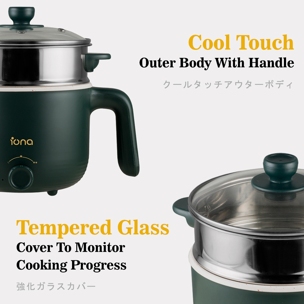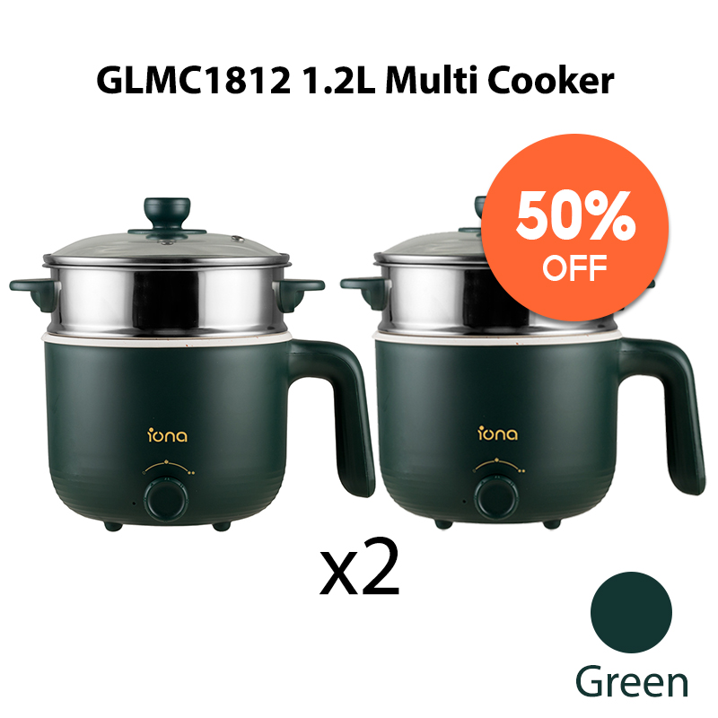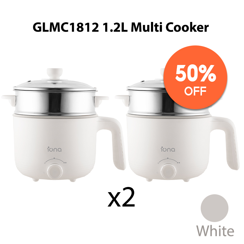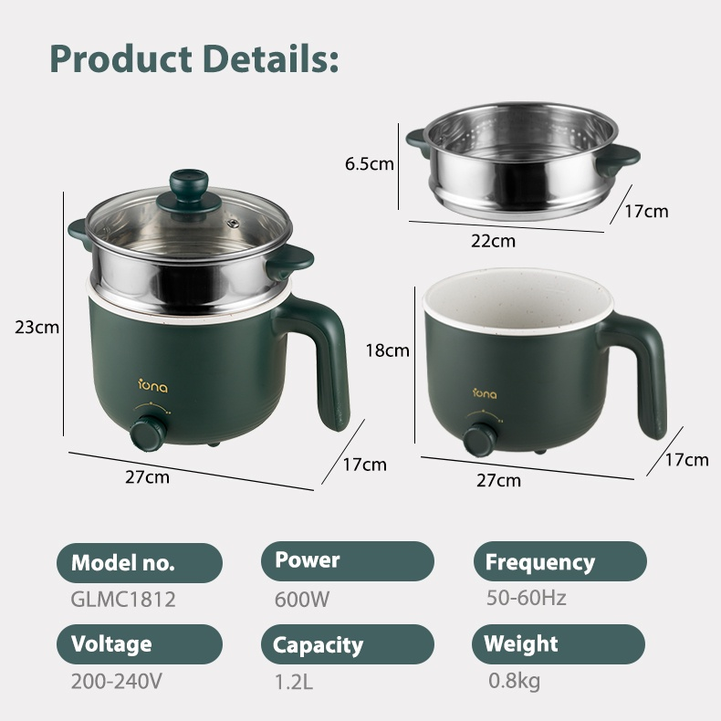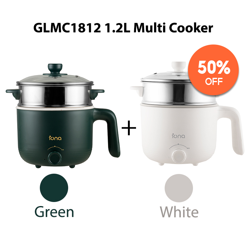 IONA 1.2L Ceramic Mini Non Stick Multi Cooker With Steamer | Multi Function Small Rice Cooker Hotpot 多功能 电煮锅 - GLMC1812