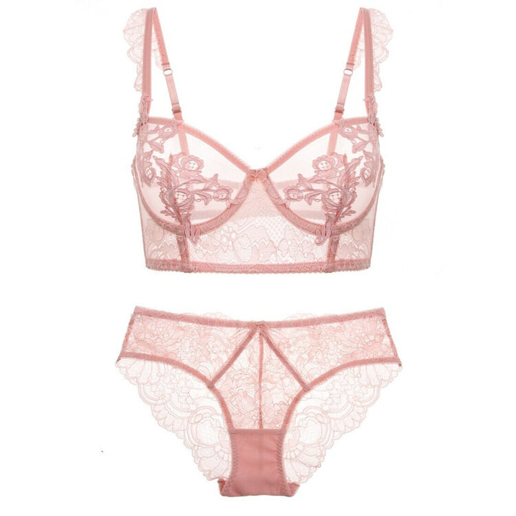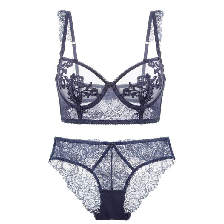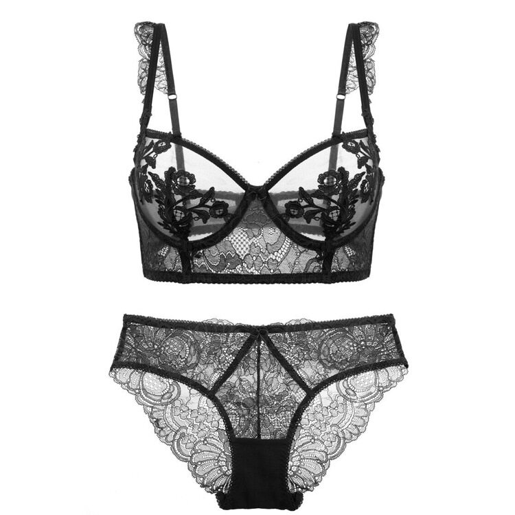 Brand: TEEVANCCE Comfortable, breathable, unlined cup High quality embroidered lace bra set Exquisite workmanship, the cup surface is embroidered with lace flowers, 3/4 cup full side covering breast Comfortable three-breasted design, bra and panty set