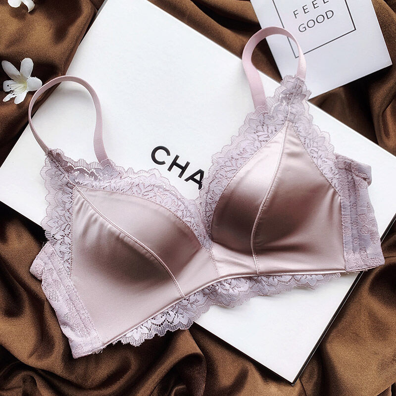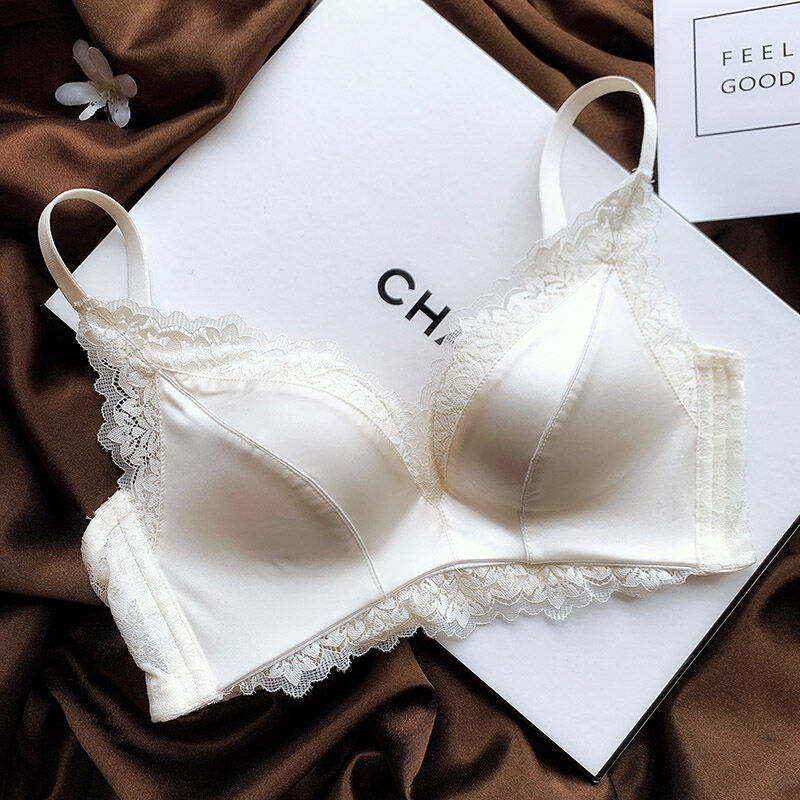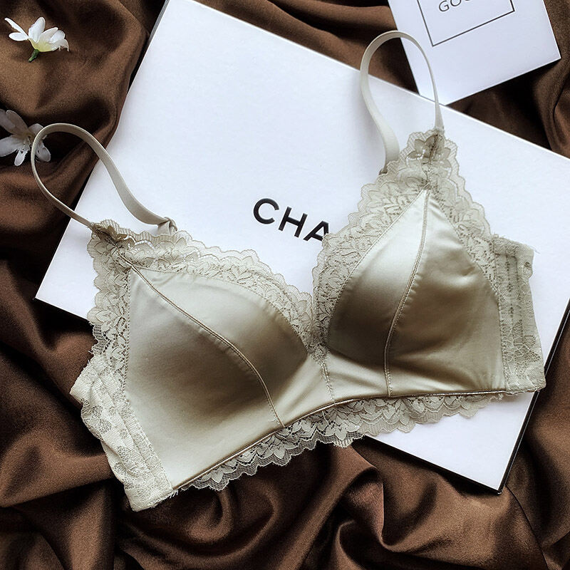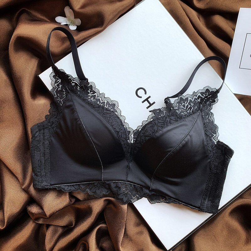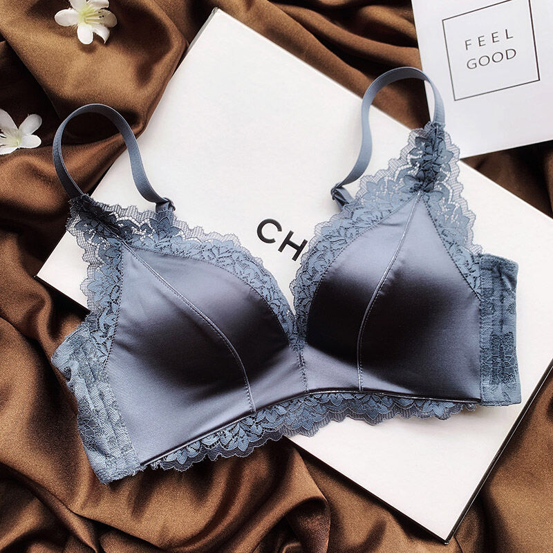 No Steel Ring Small Bust High-End Satin Comfortable Flat Chest Underwear Fashion Adjustable Push Up Bra Retro Seamless