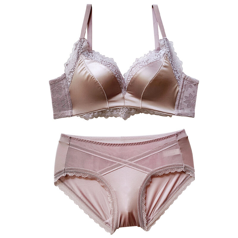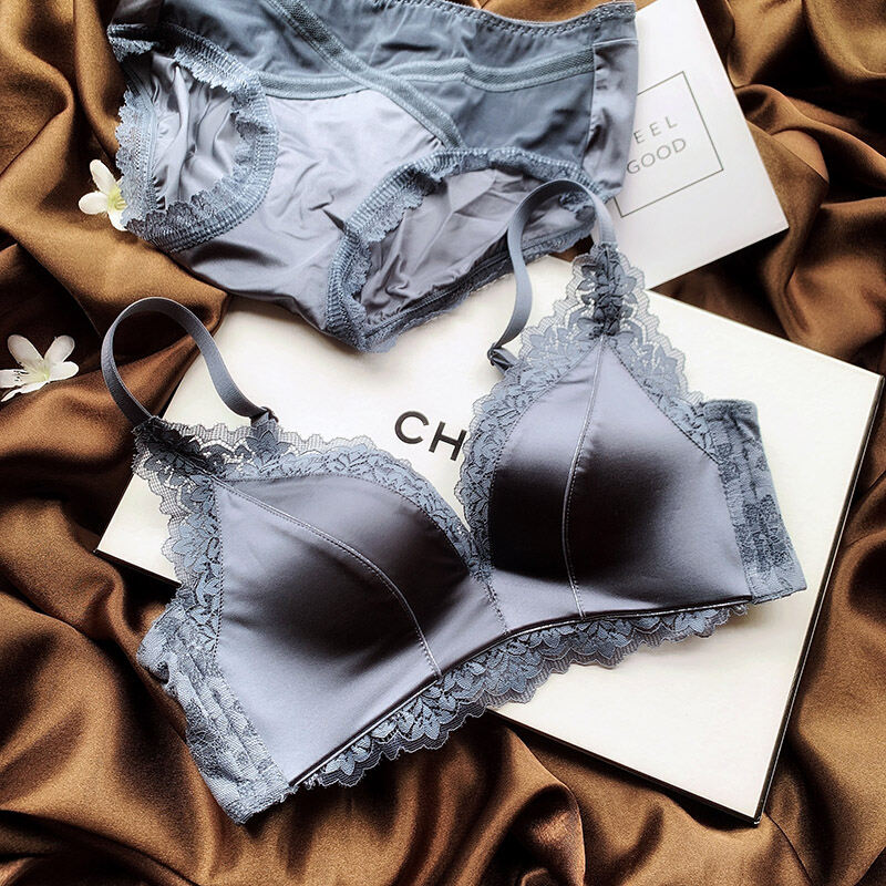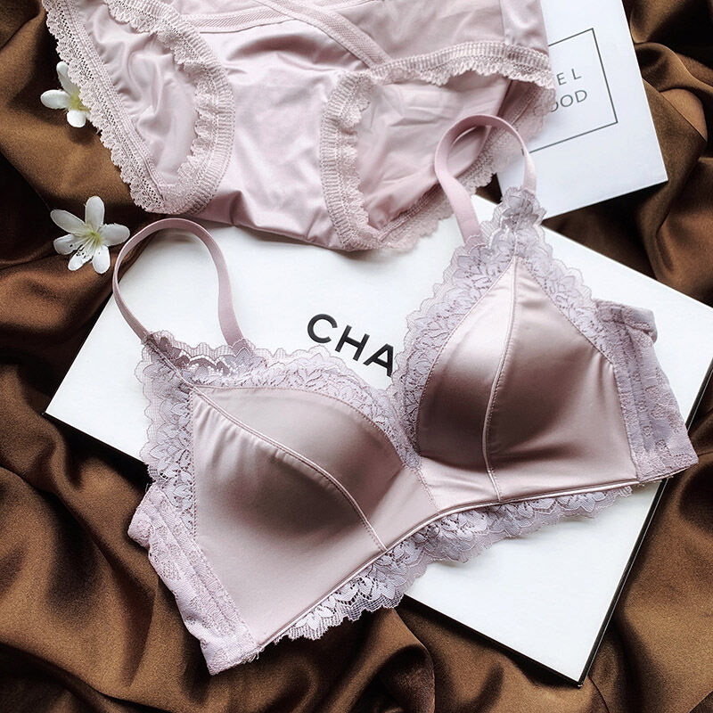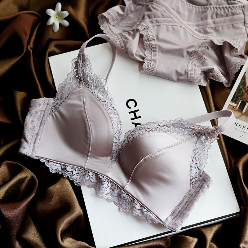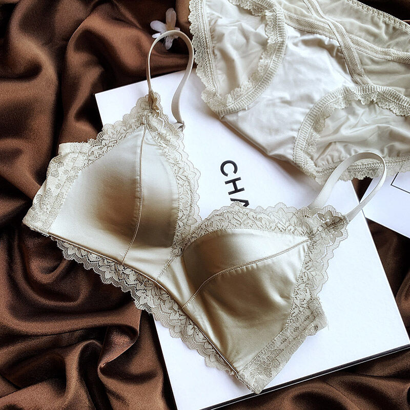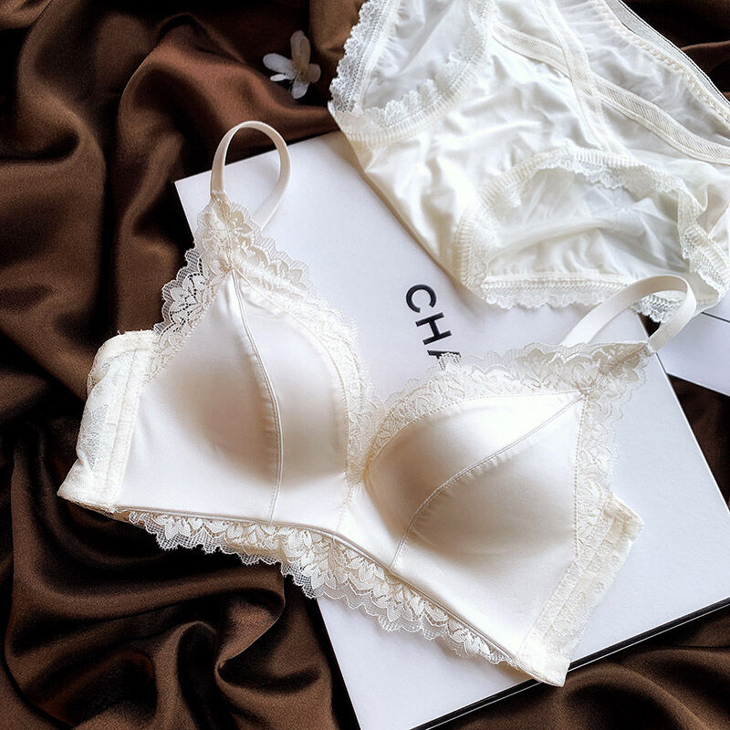 No Steel Ring Small Bust High-End Satin Comfortable Flat Chest Underwear Fashion Adjustable Push Up Bra Retro Seamless