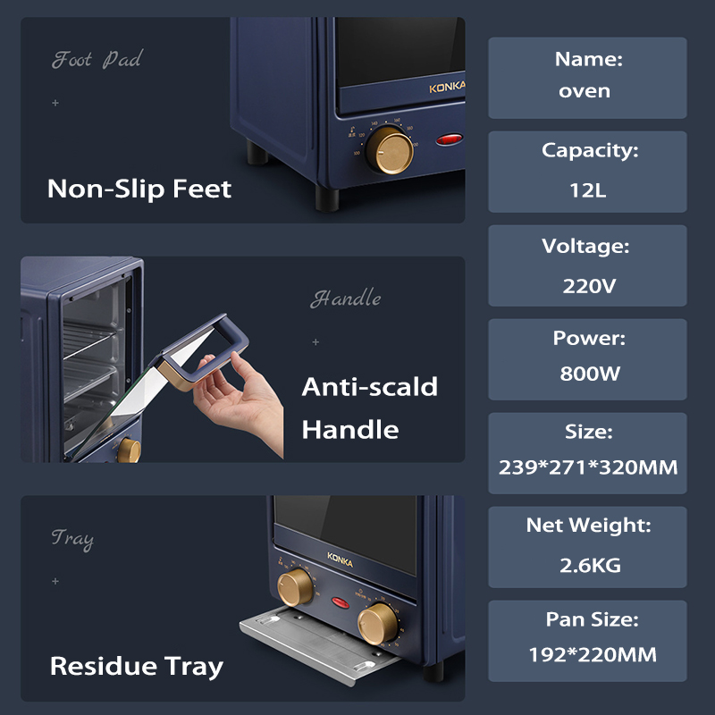 SG Ready Stock High Quality KONKA 12L Electric Oven Mini Vertical Multi Purpose Oven Three-Tier Kitchen Oven【KAO-L12】