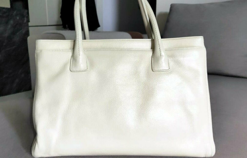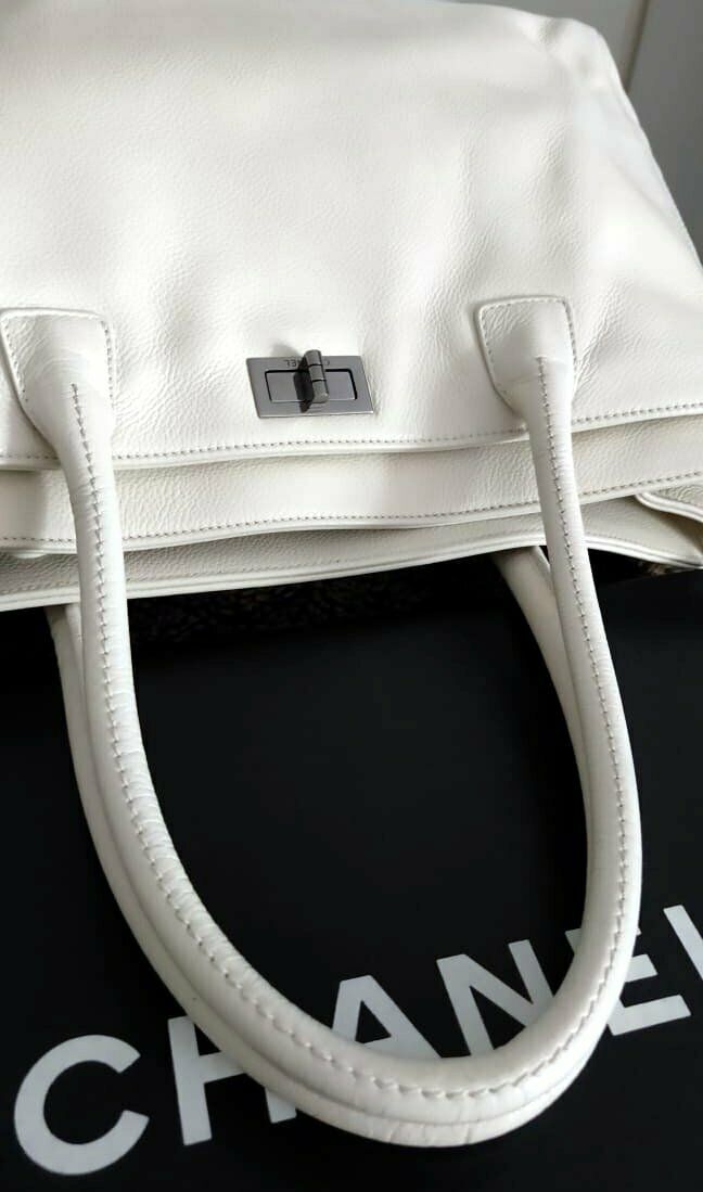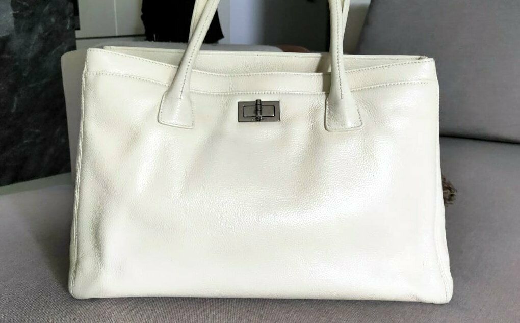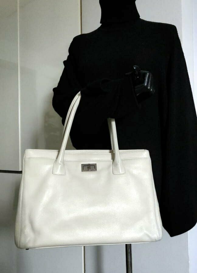 Chanel Classic Ivory Grained Calfskin Silver Reissue Executive Tote with Pouch