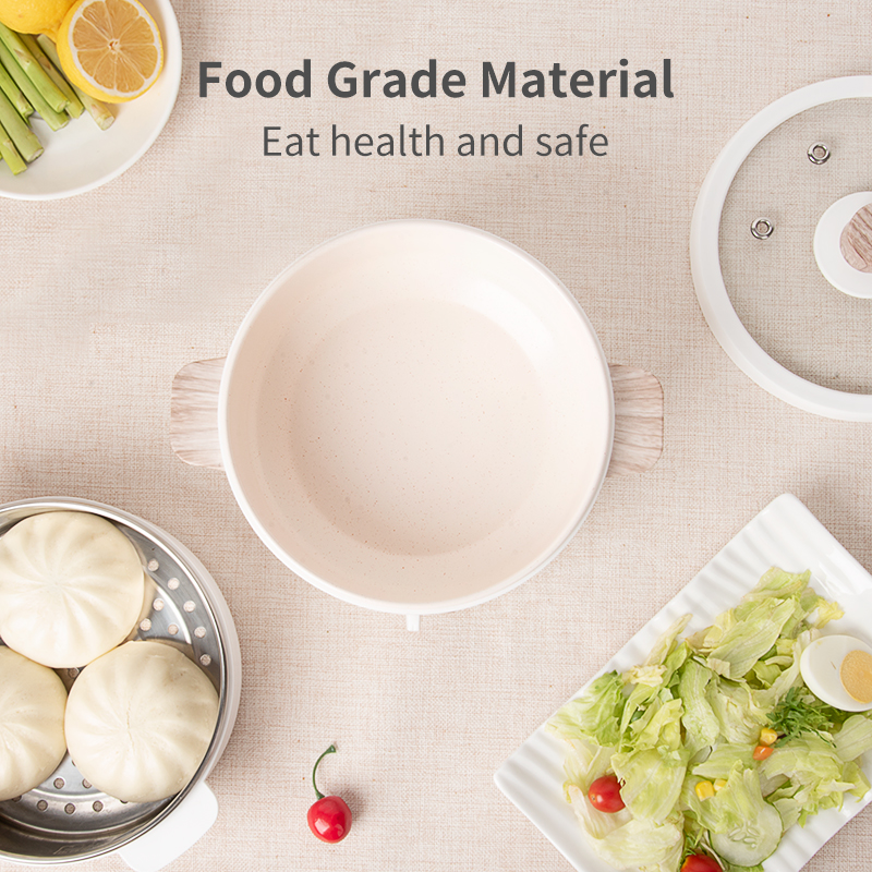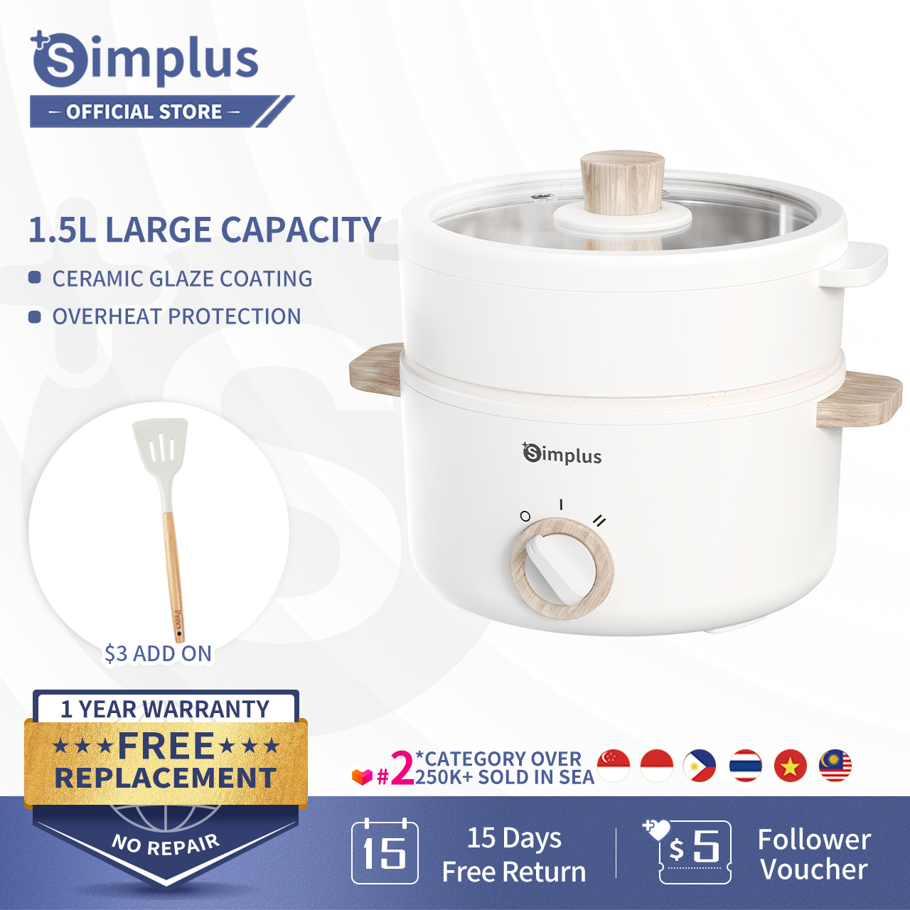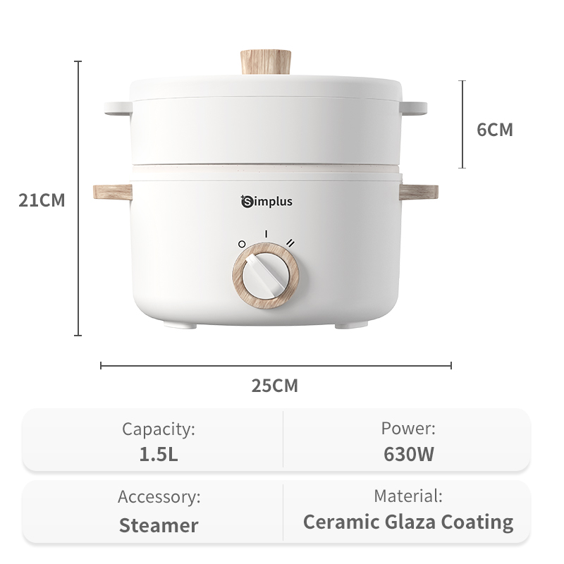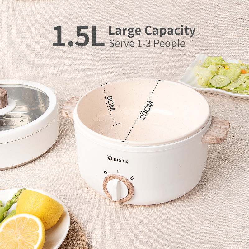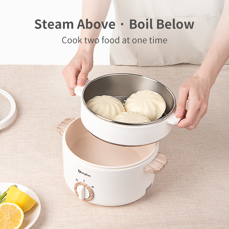 Simplus Electric Cooker Round Pot With Steamer Multicooker Hot Pot Frying Pan Soup Pot Multifunctional Non-Sticky Portable