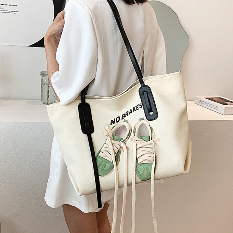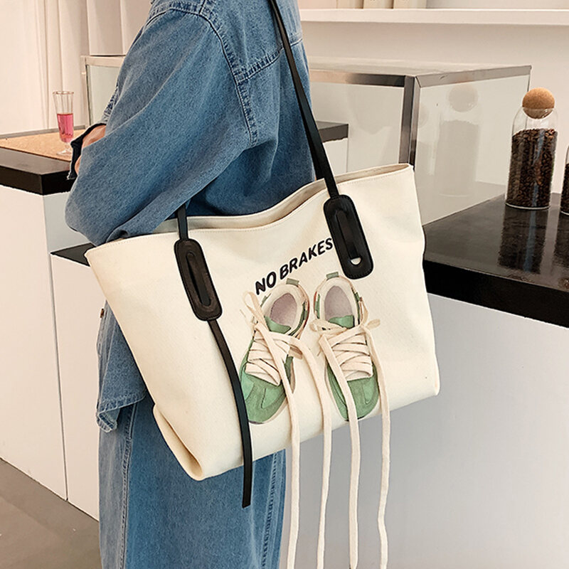 Large Capacity Fashion Big Bags Women's Bag 2023 New Versatile Internet Celebrity Canvas Tote Bag Texture Popular Shoulder Bag