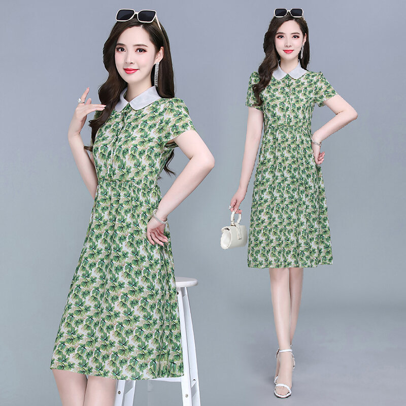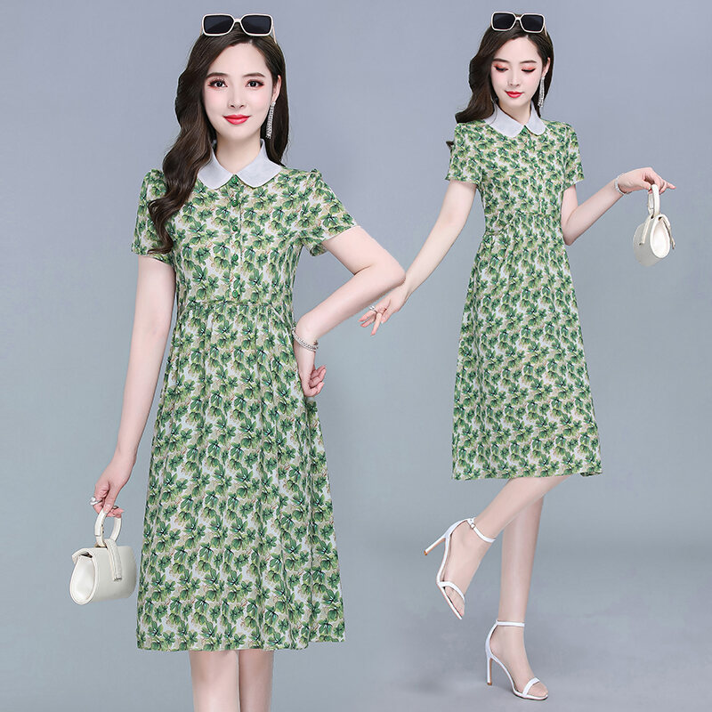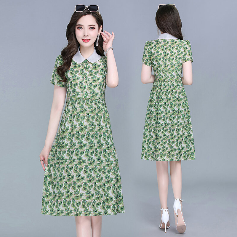 Summer New Lady's High-End Dress Mid-Length Korean Style Slimming Mom Women's Popular Floral Dress This Year