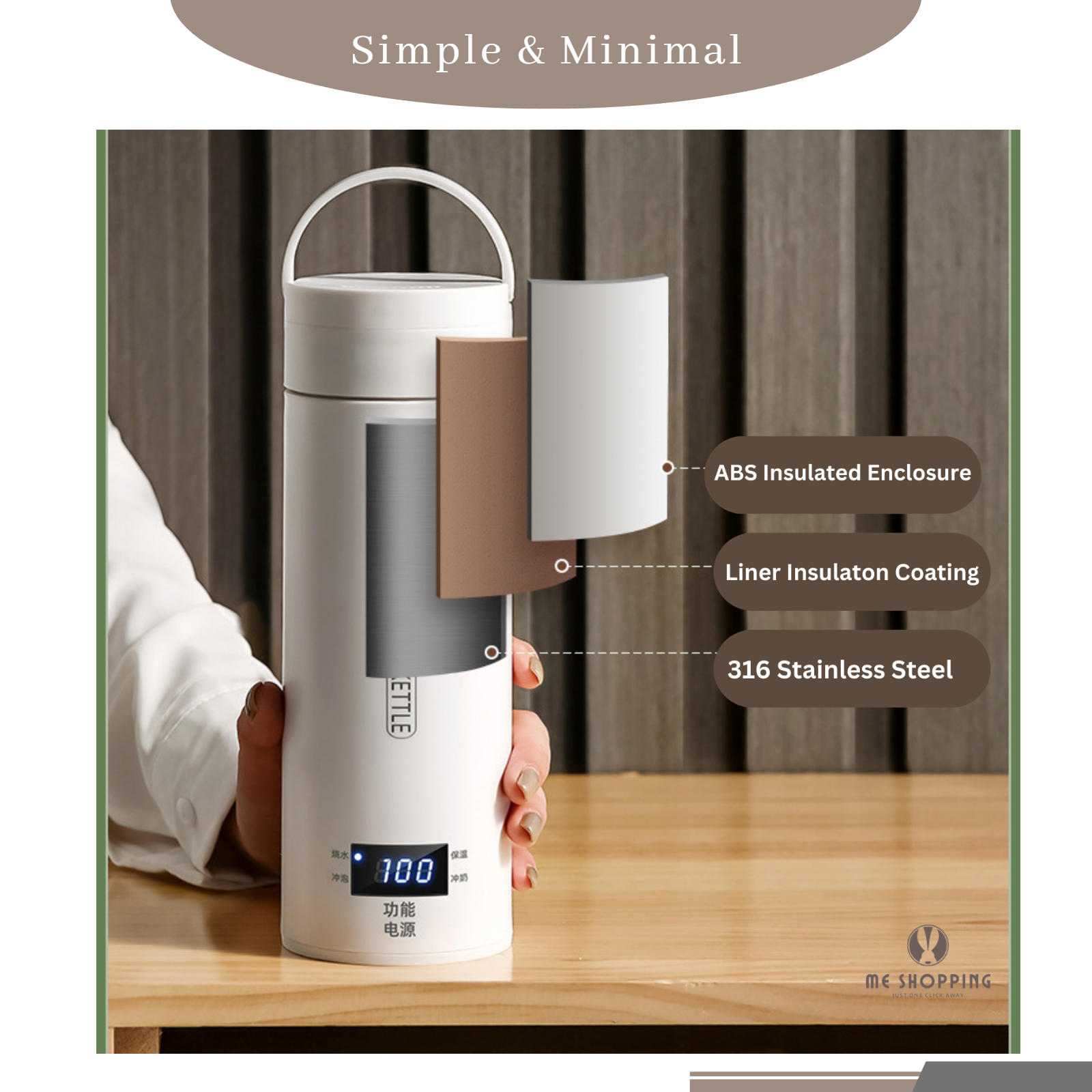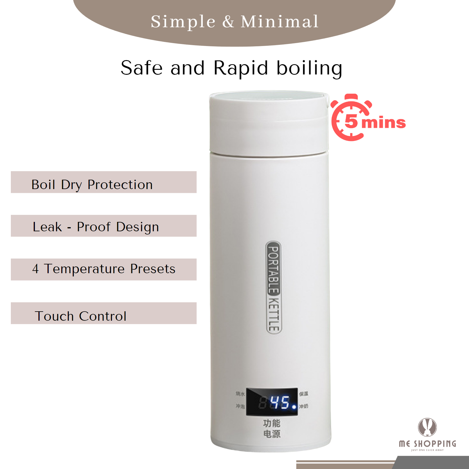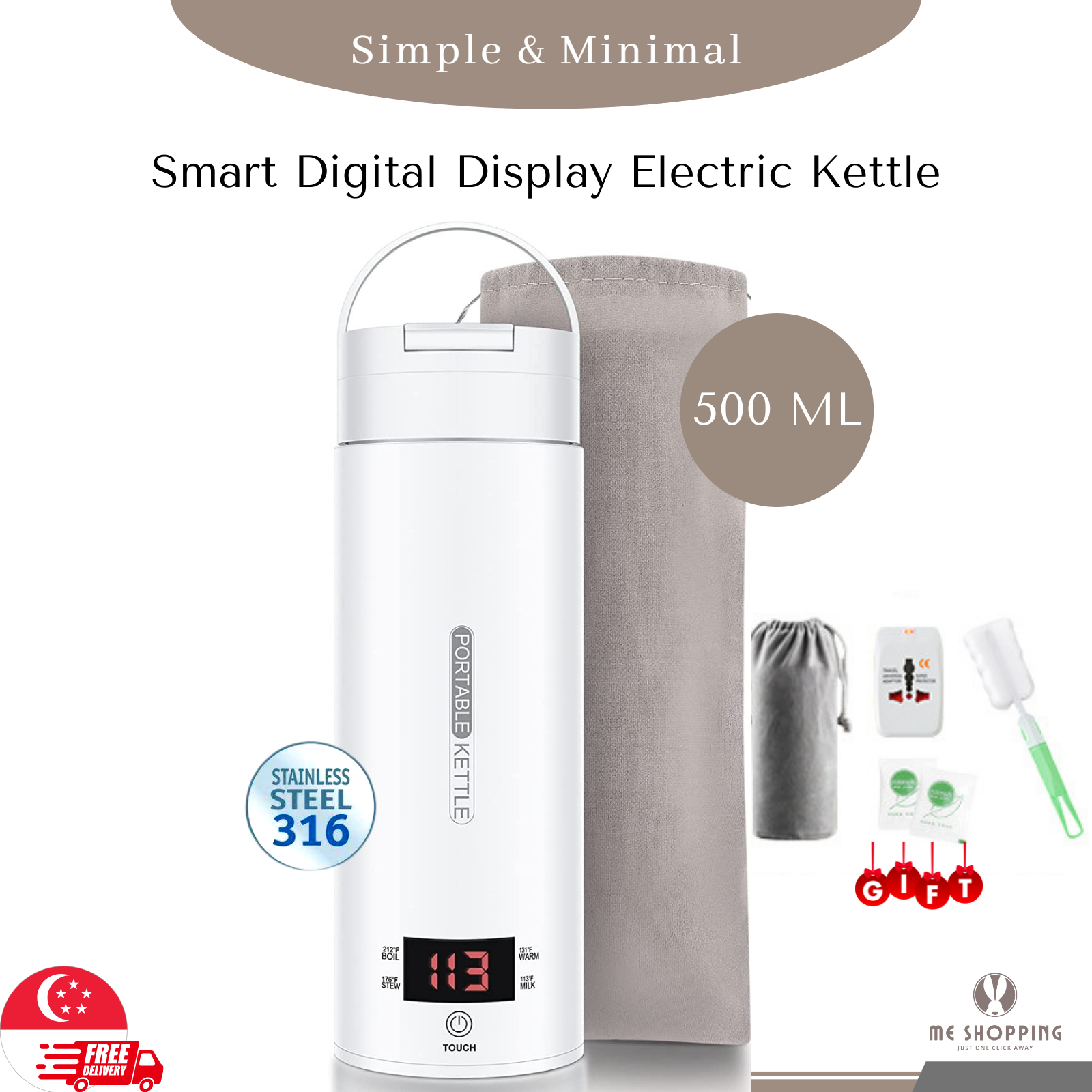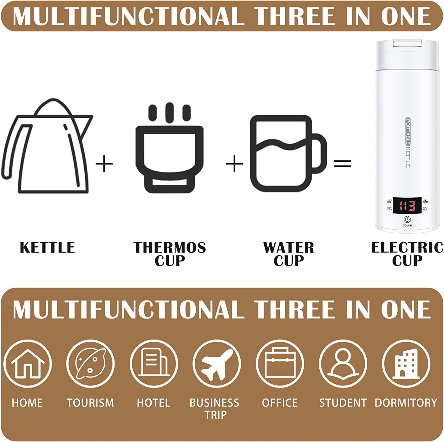 Travel bottle Kettle Electric Small Stainless Steel Portable Electric Kettle for Boiling Water Travel Tea Kettle Automatic Shut off Dry Protection 4 Preset Heat Setting 500ml Hot Water Kettle for Coff