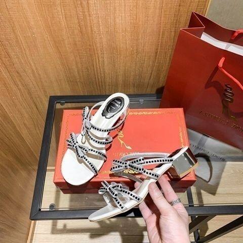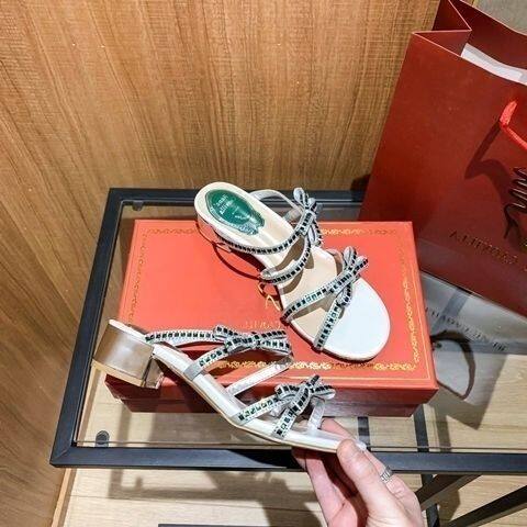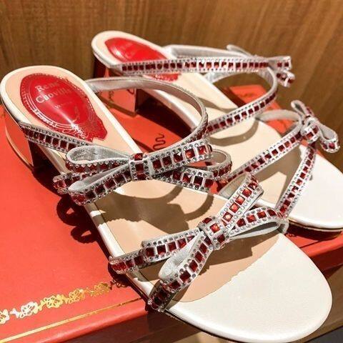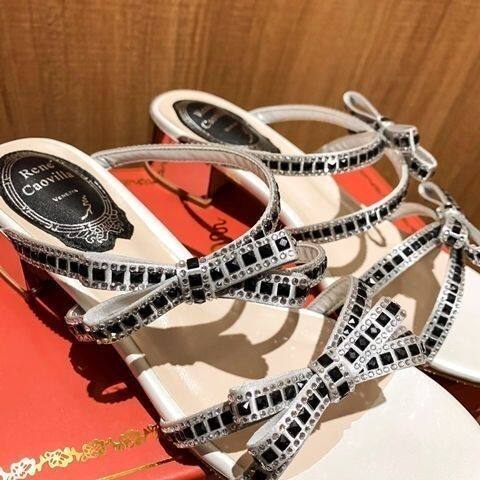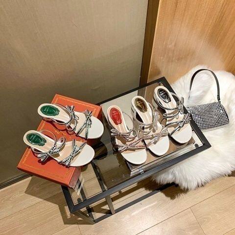 Rene caovillaˉ Bowknot Sandals Women's 2022 Summer New Fashion Fashion Comfortable Purple Thick Heel Sandals Versatile Open Toe Flat Shoes