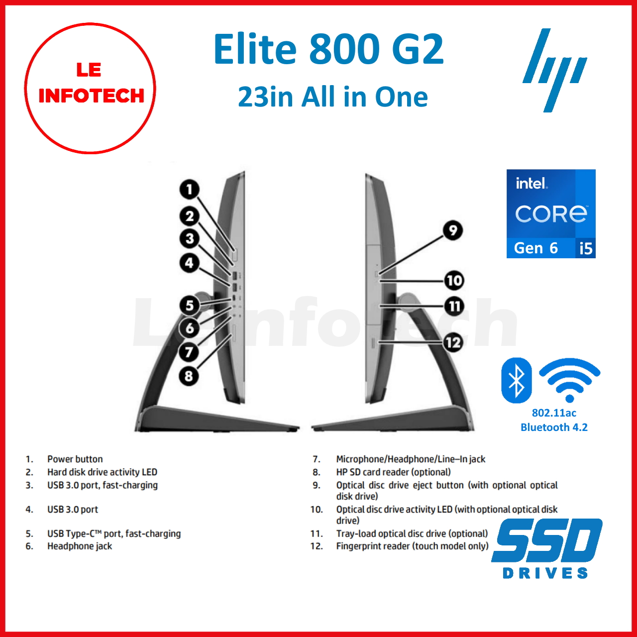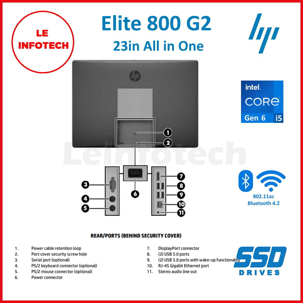 HP Elite 800 G2 23in All in One Desktop Intel i5 Gen6 8/16GB RAM 512GB SSD Webcam HDMI Win10Pro Used 30 Days Warranty - Leinfotech