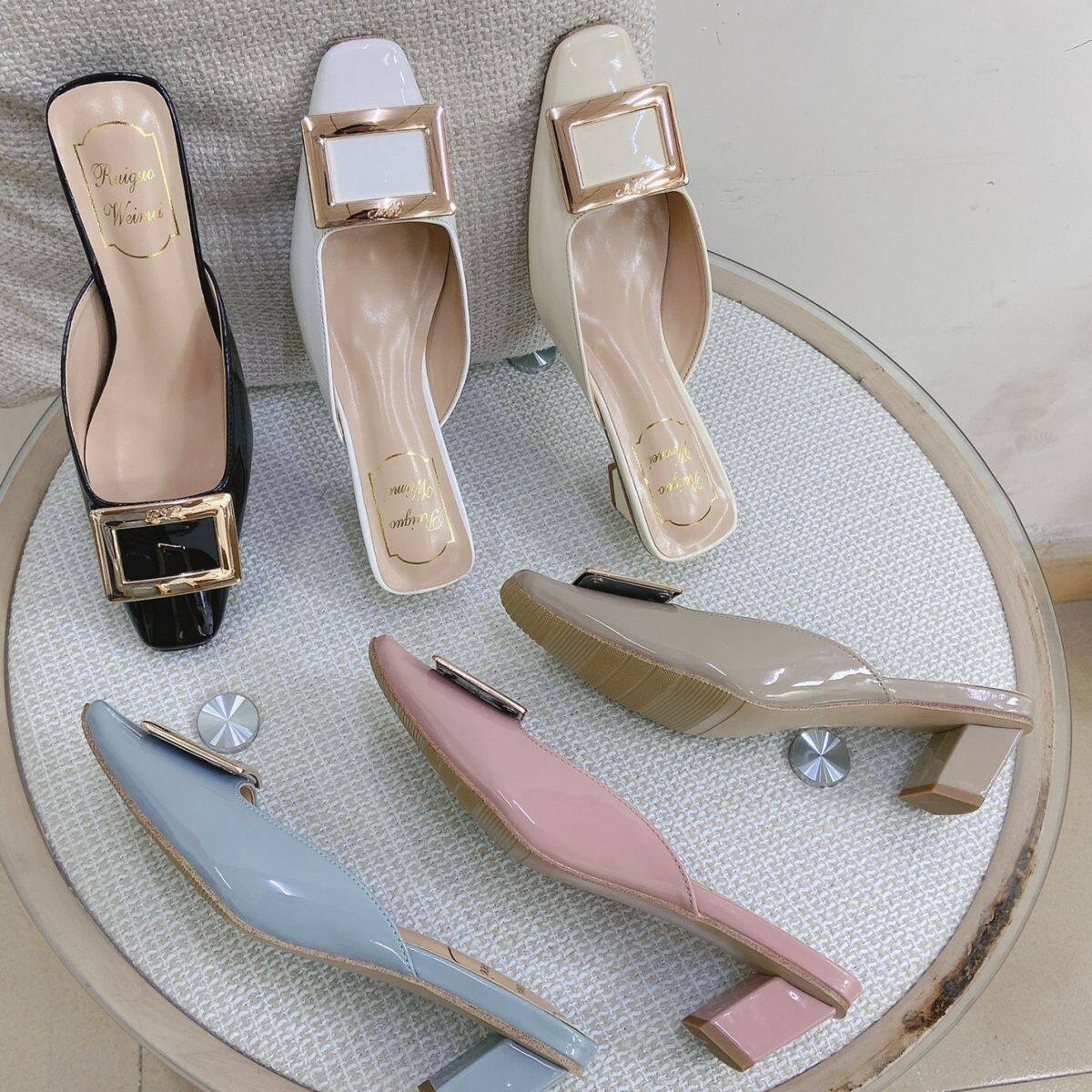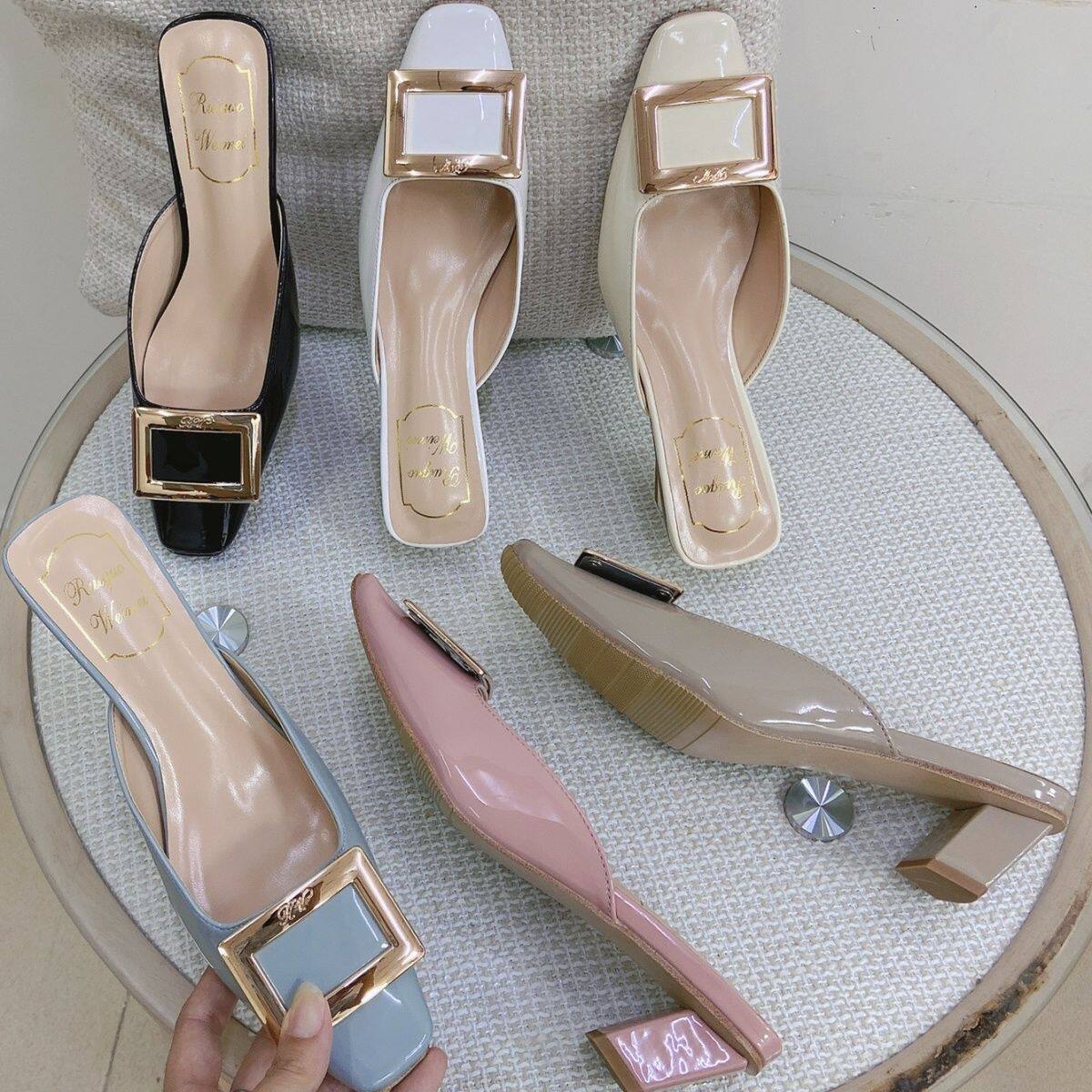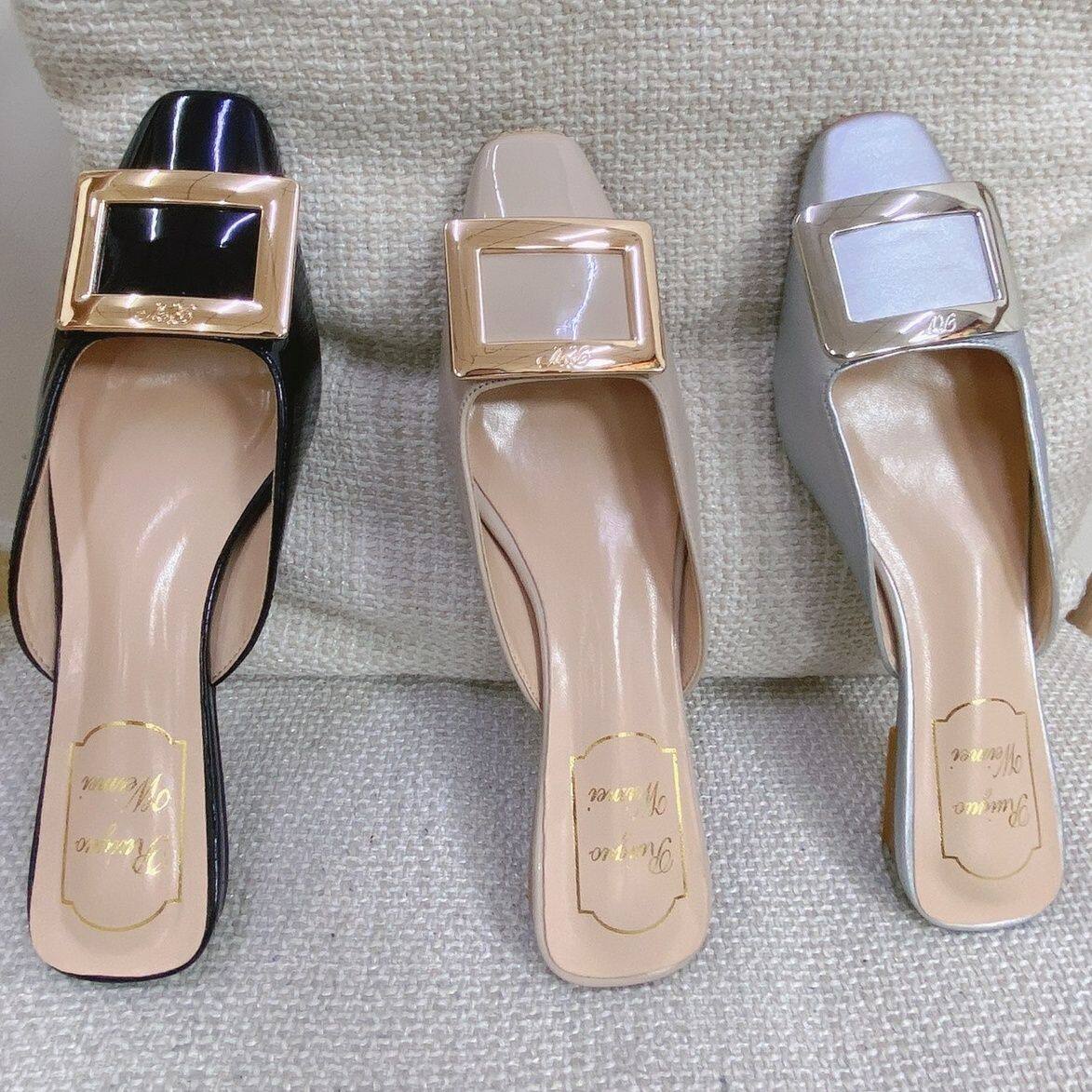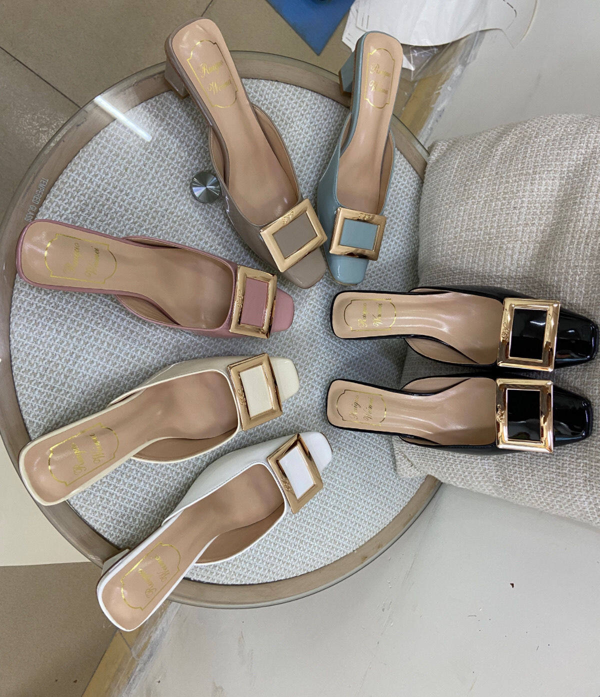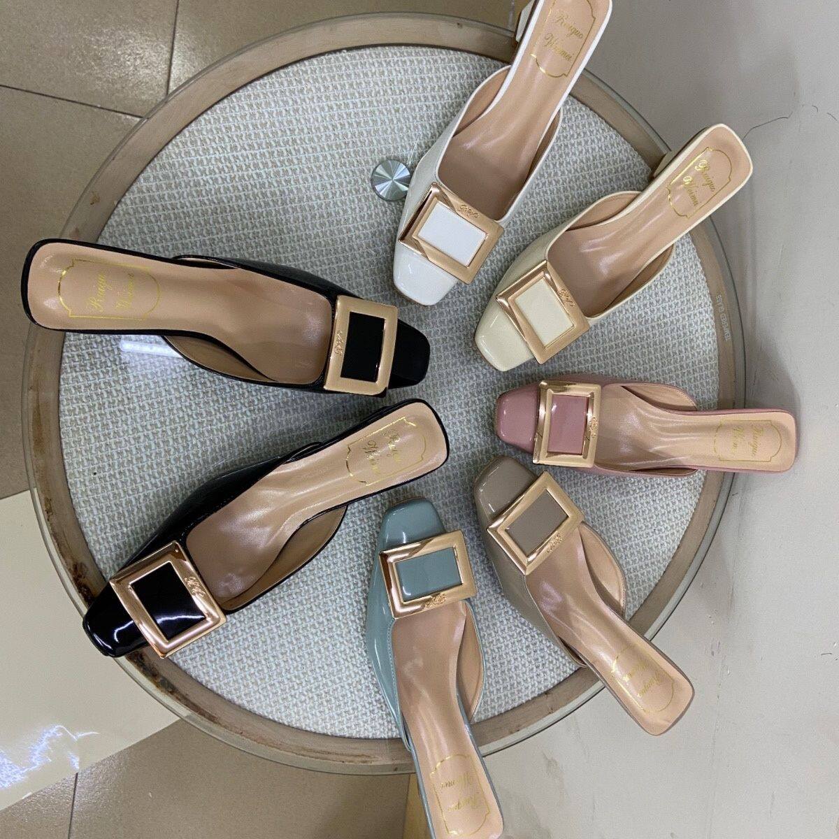 2023 Roger vivierˉnew summer - square-headed half slippers women wear square-headed thick heel square-button slacker sandals