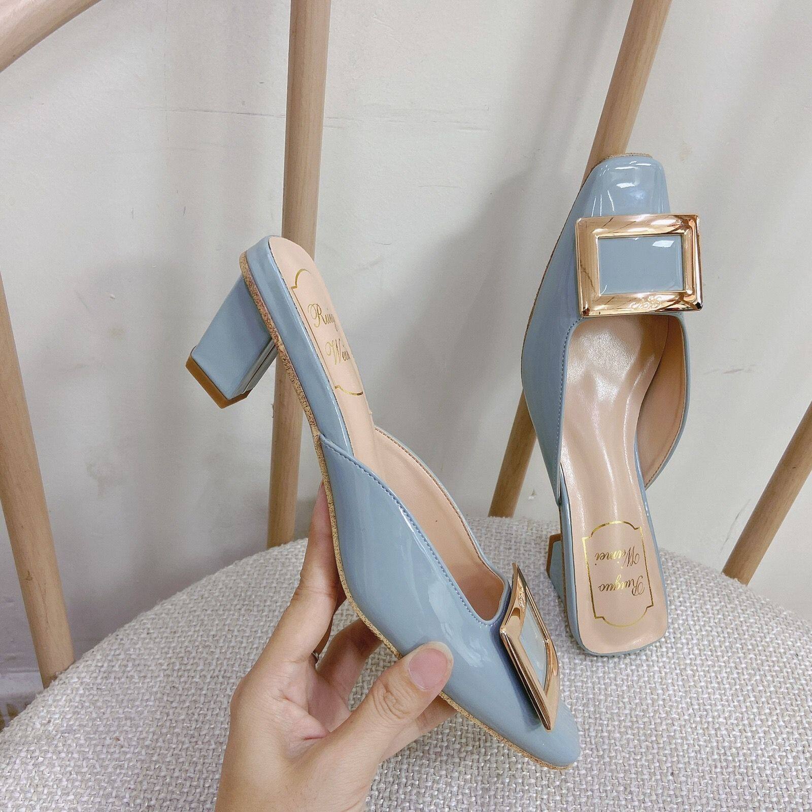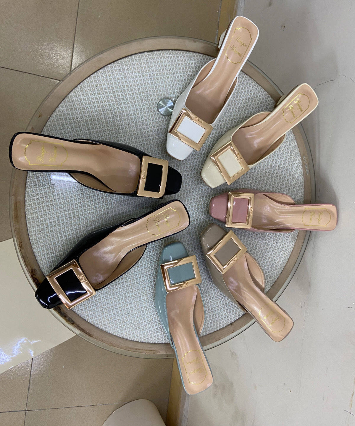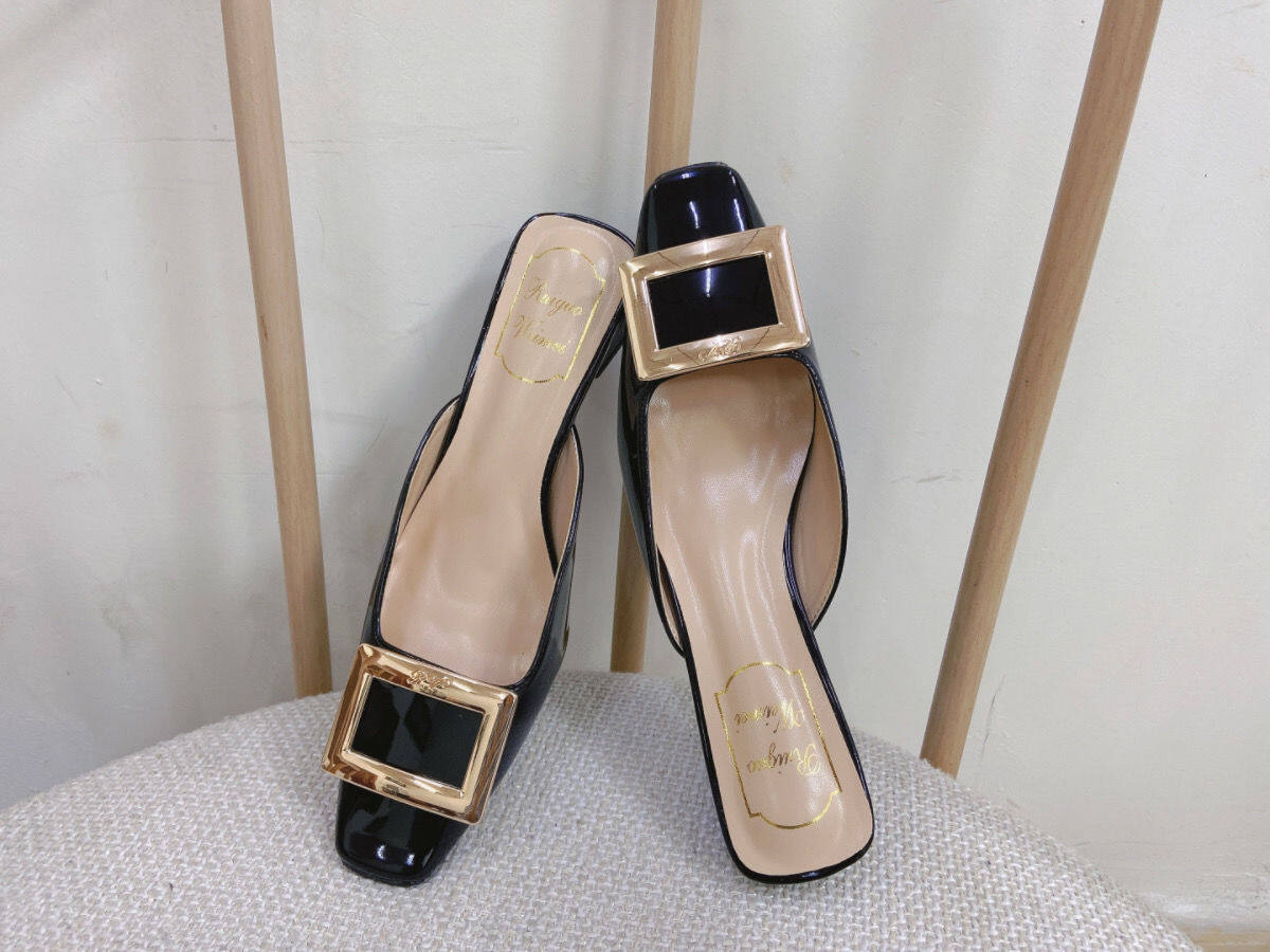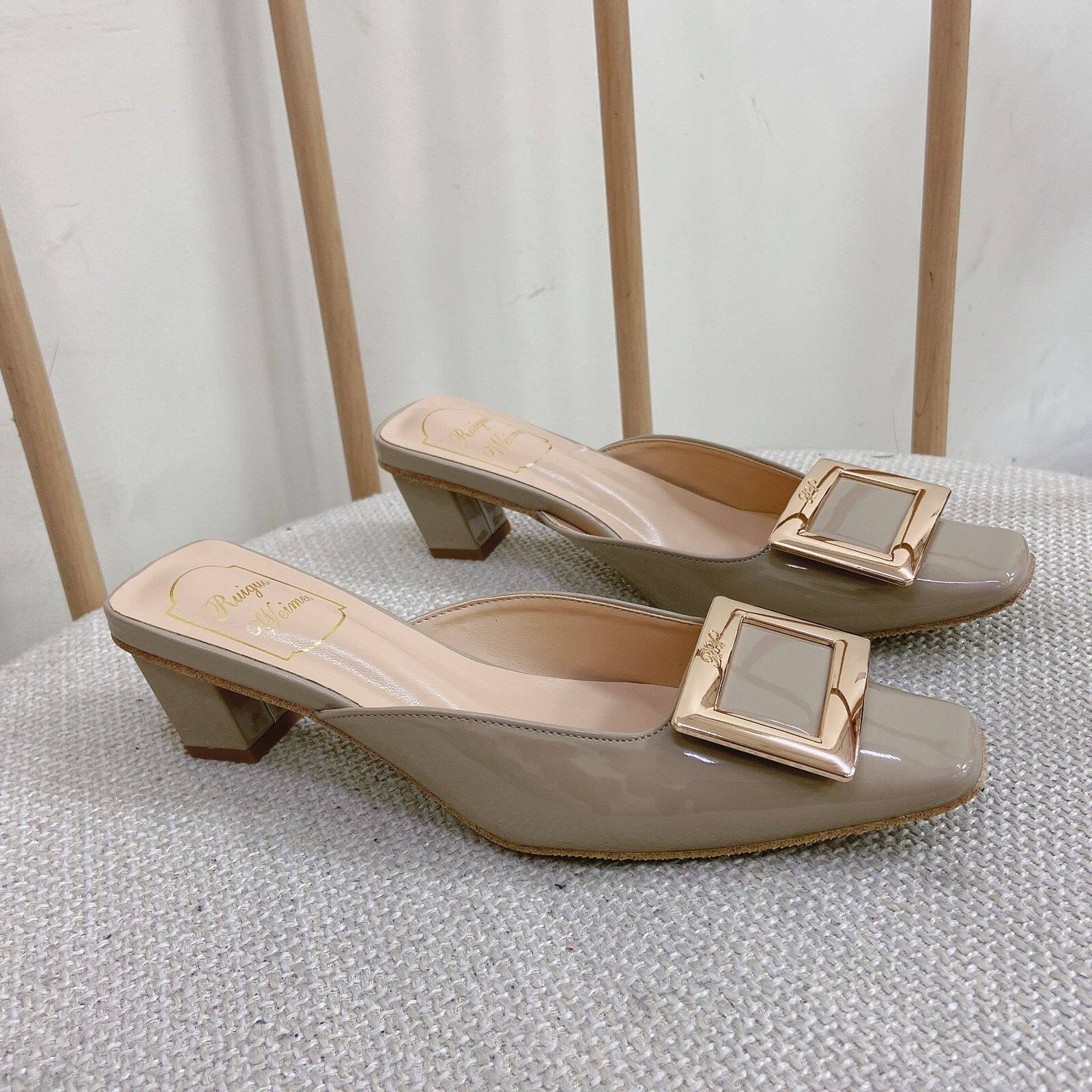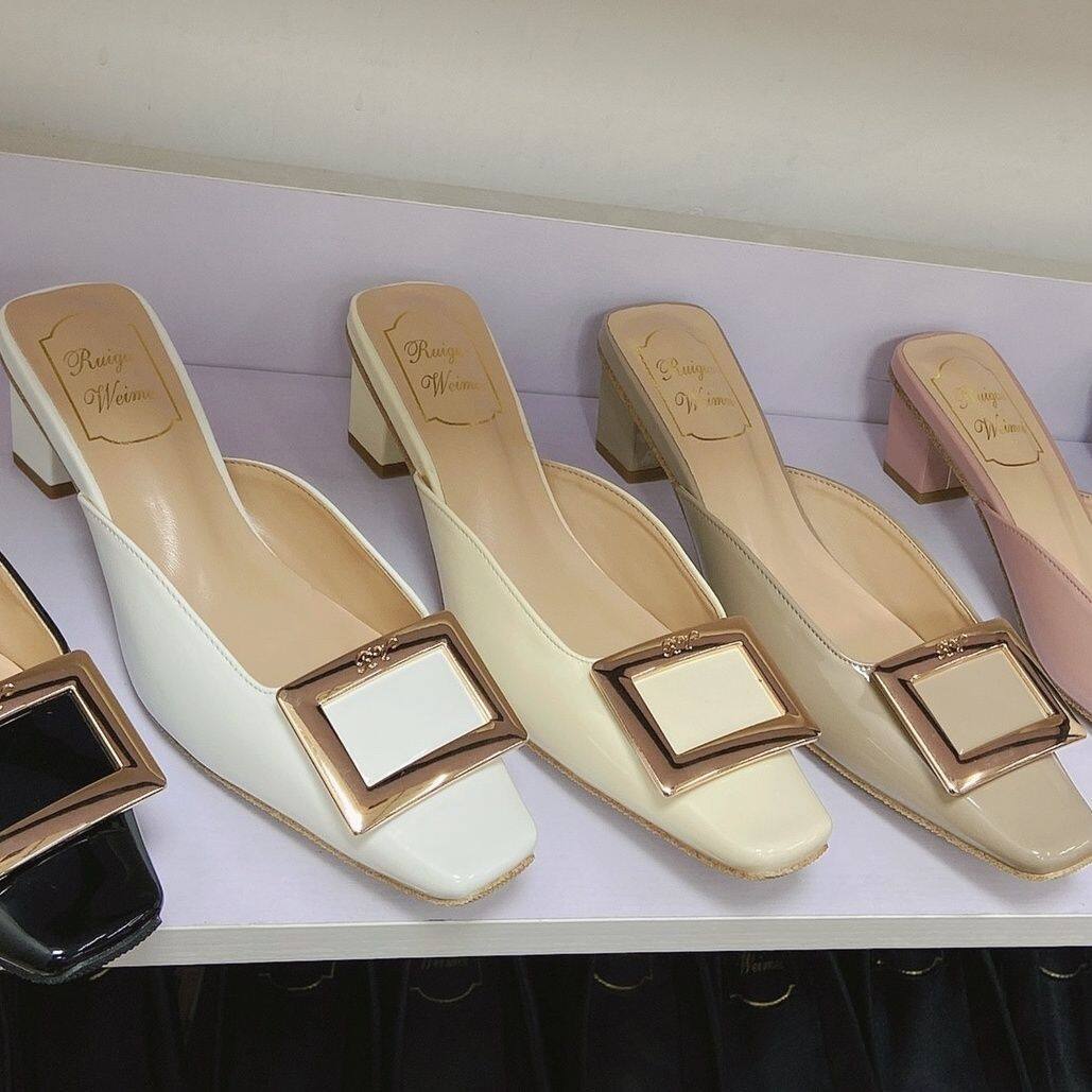 2023 Roger vivierˉnew summer - square-headed half slippers women wear square-headed thick heel square-button slacker sandals