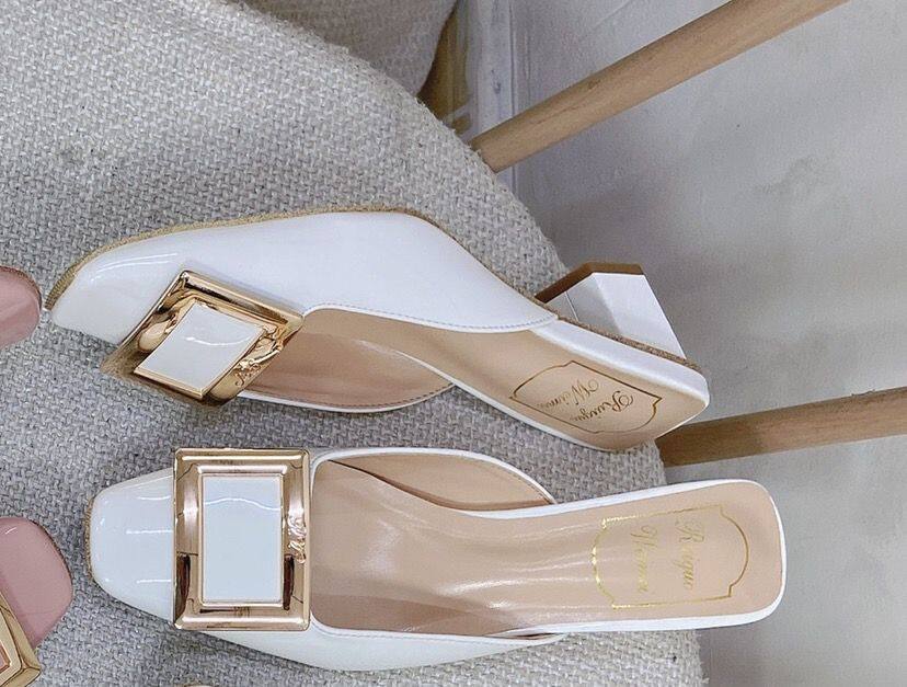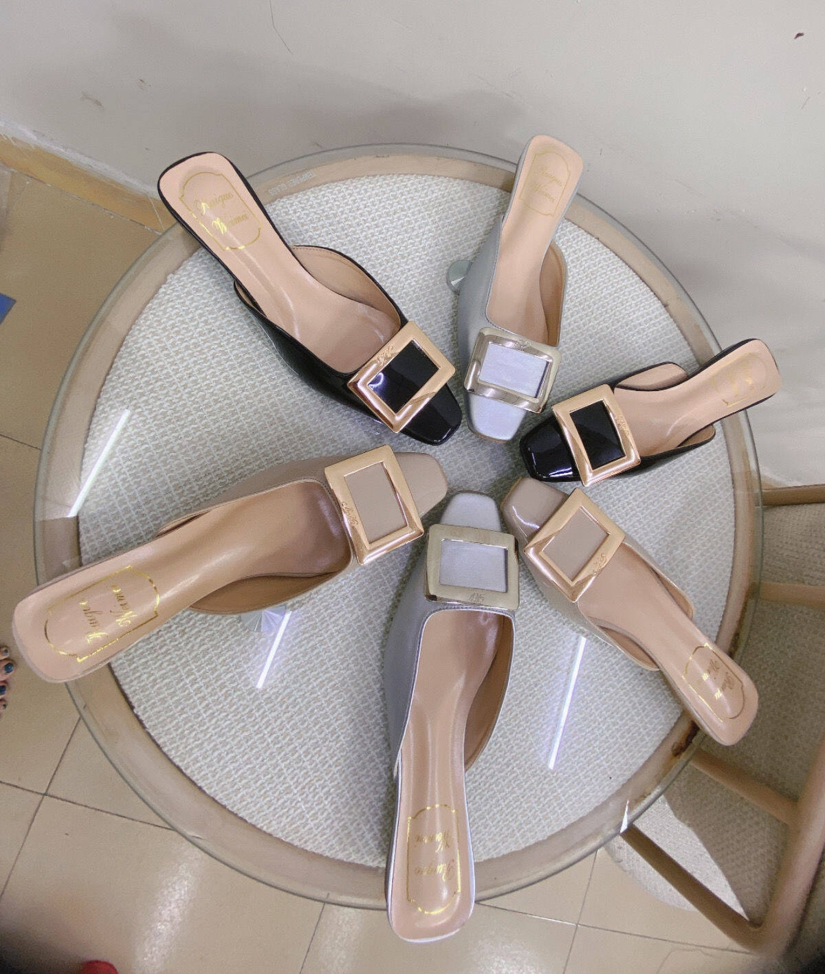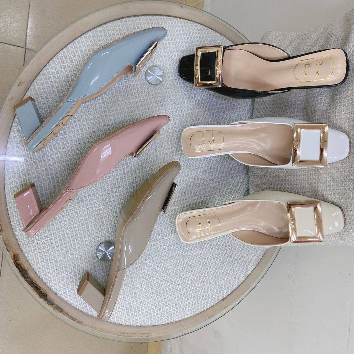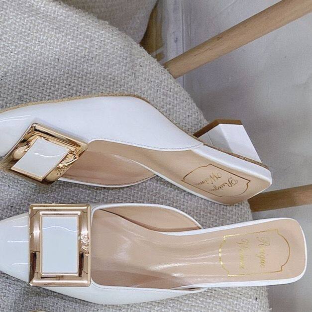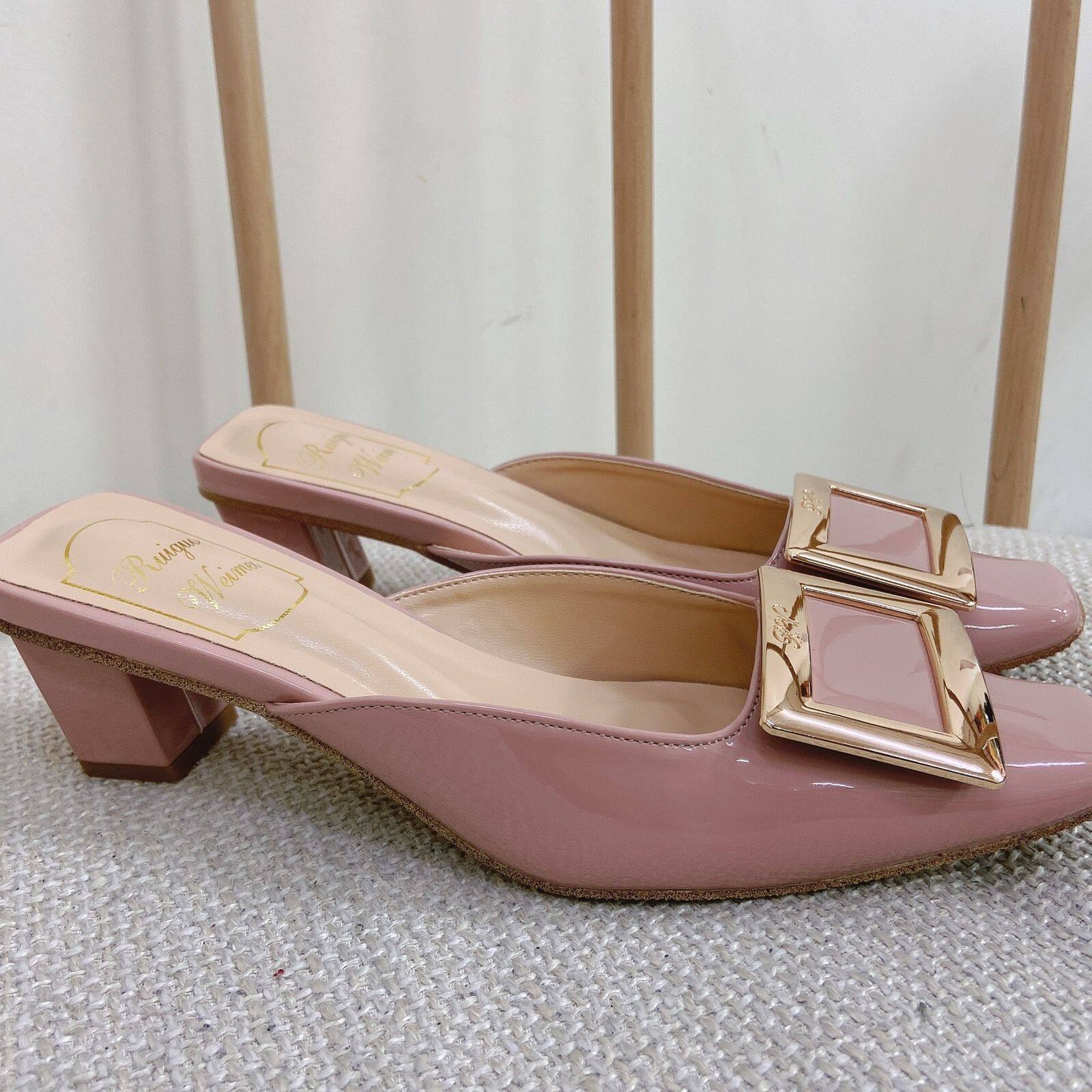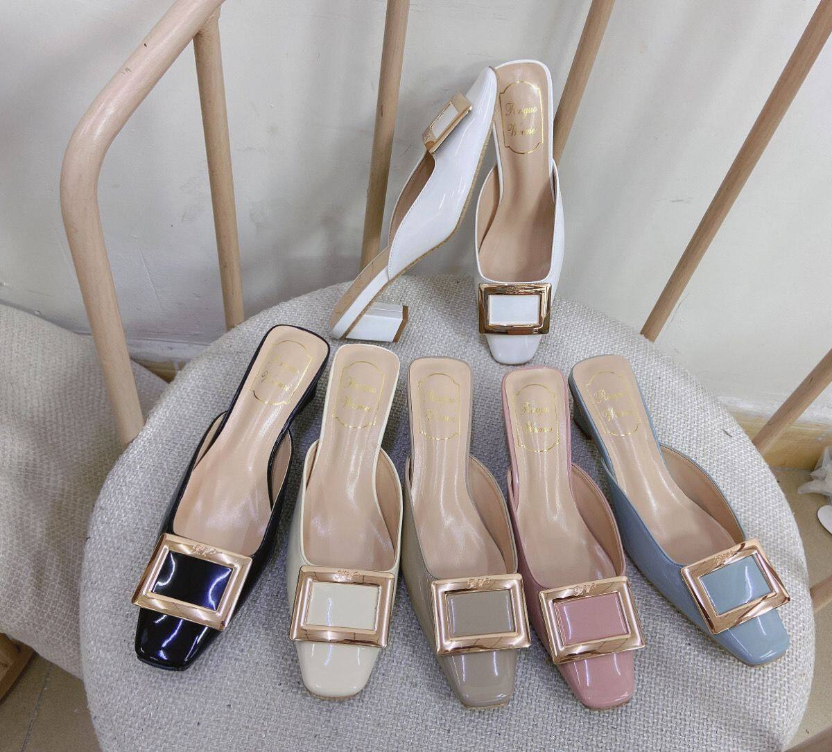 2023 Roger vivierˉnew summer - square-headed half slippers women wear square-headed thick heel square-button slacker sandals