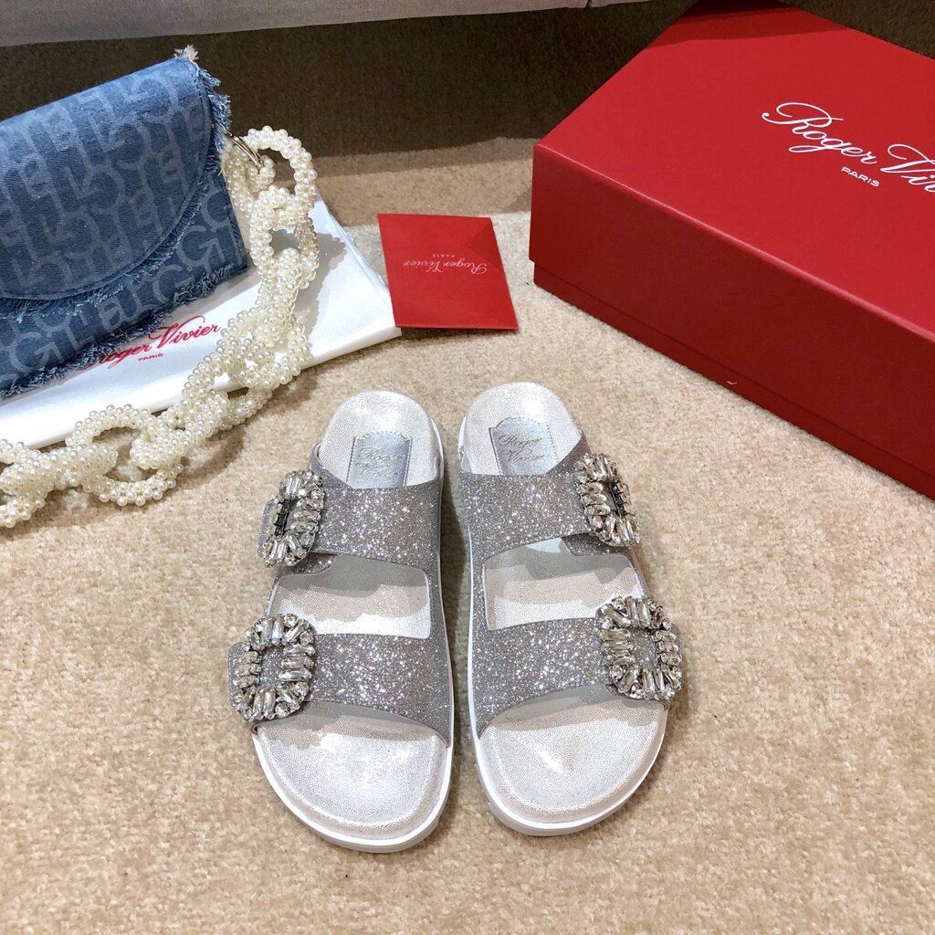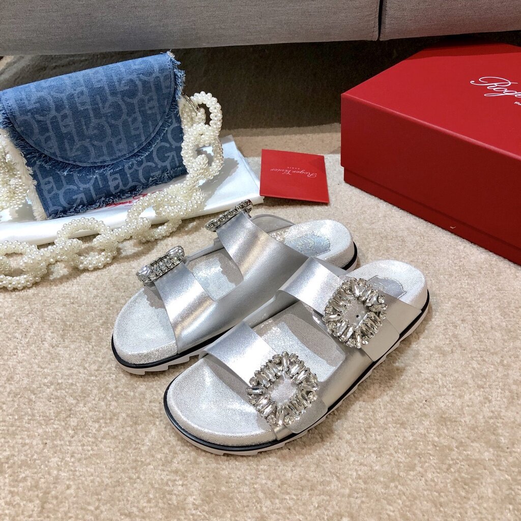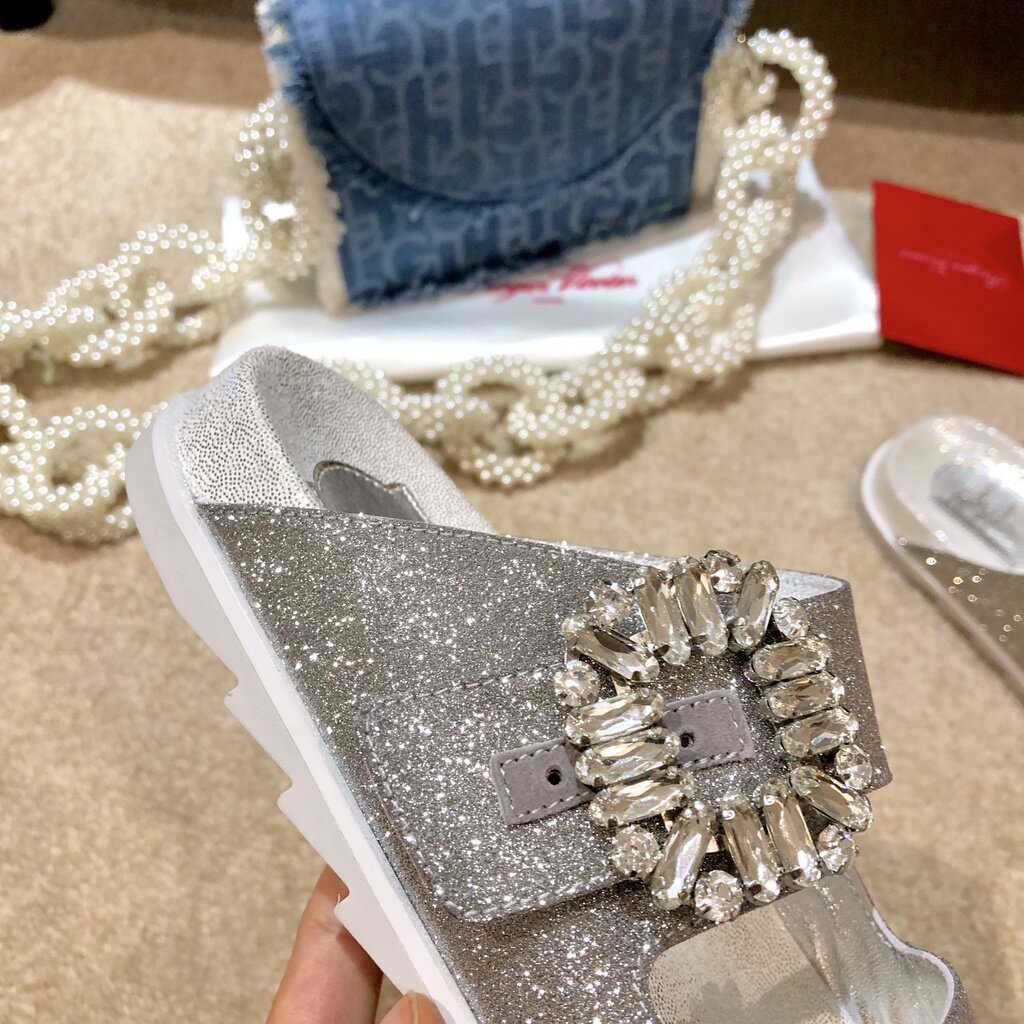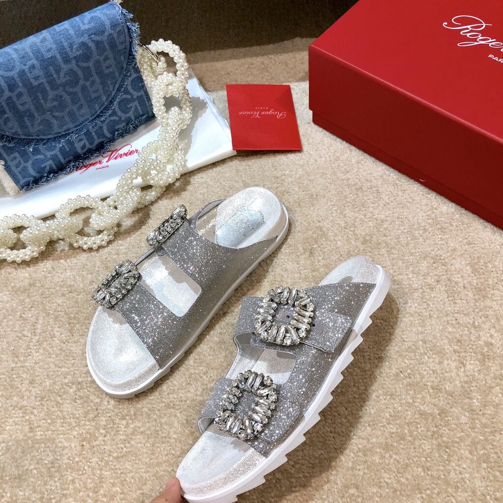 Roger vivierˉdouble rhinestone square buckle platform slippers women's fashion sandals 1031