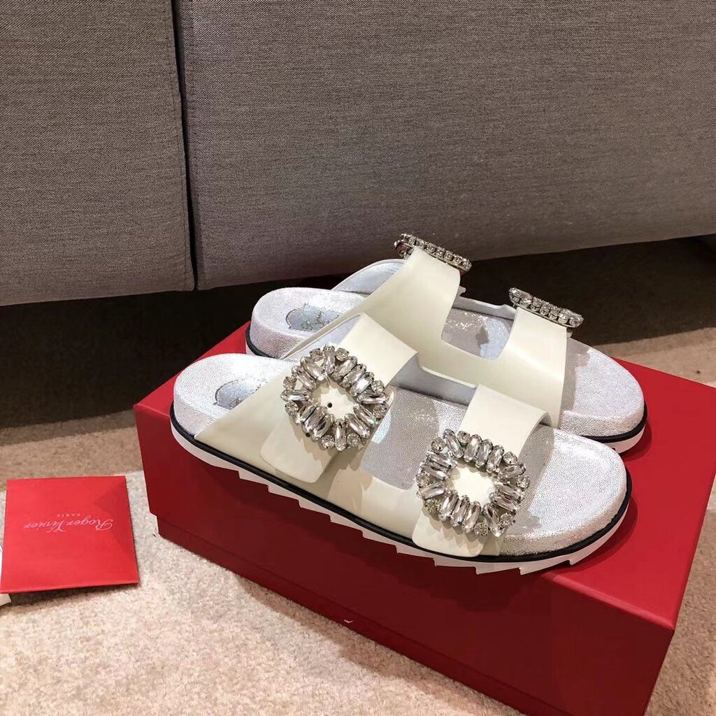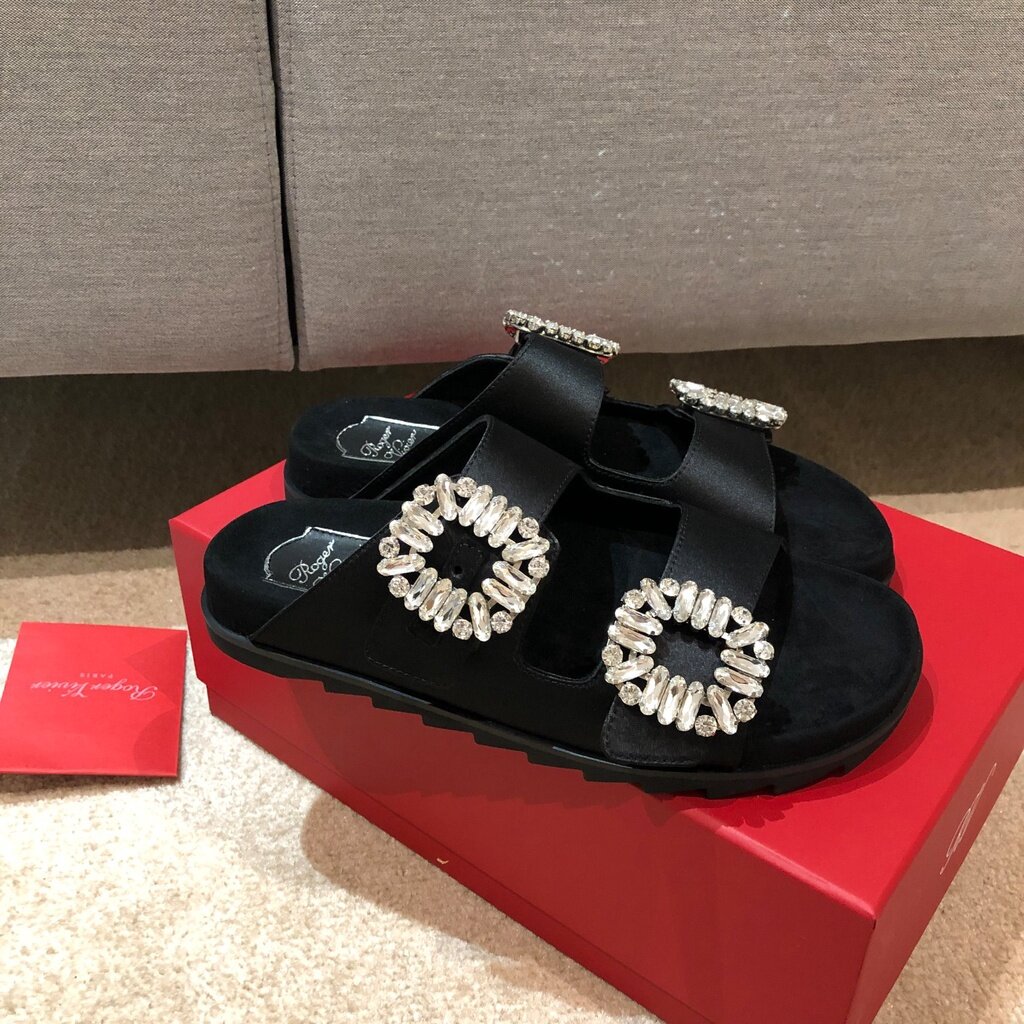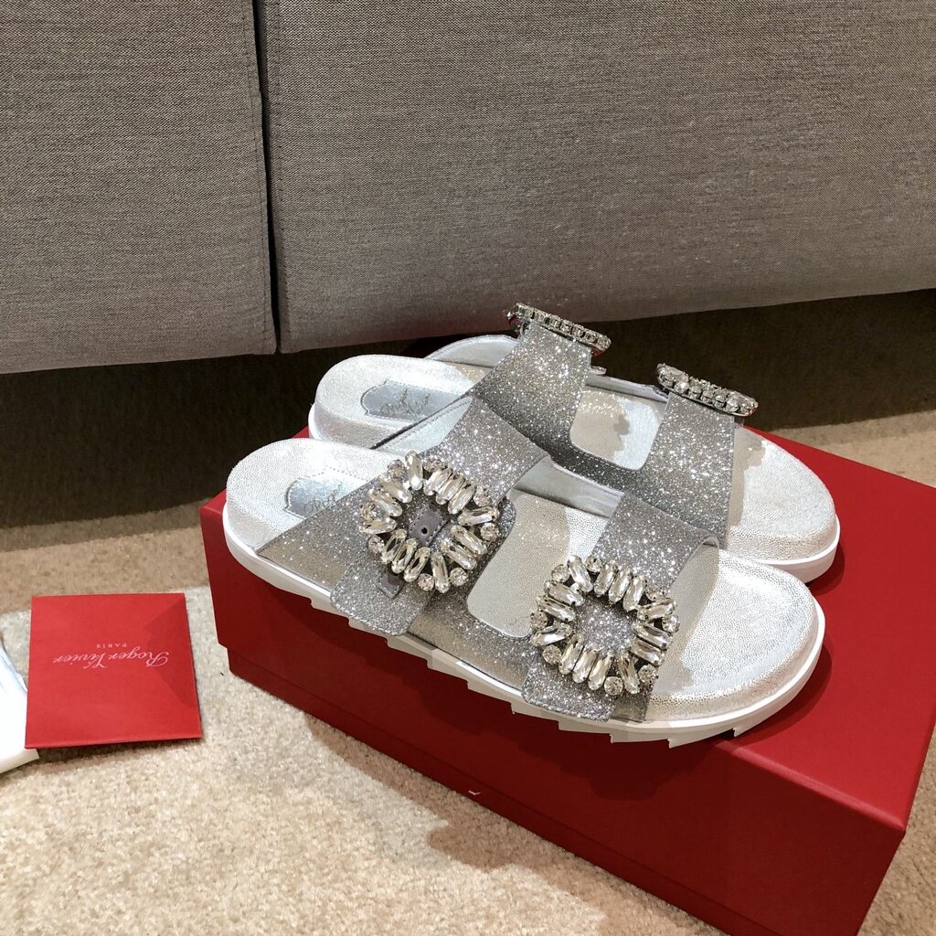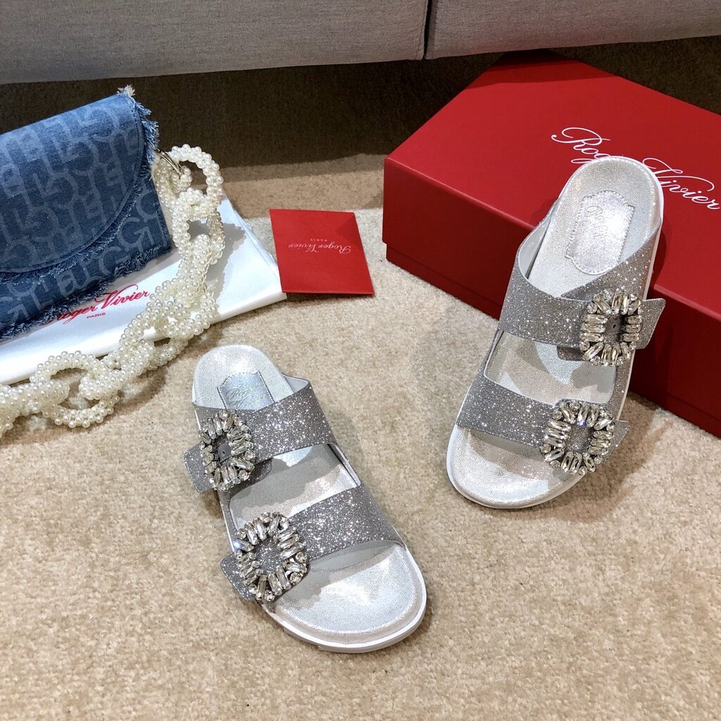 Roger vivierˉdouble rhinestone square buckle platform slippers women's fashion sandals 1031
