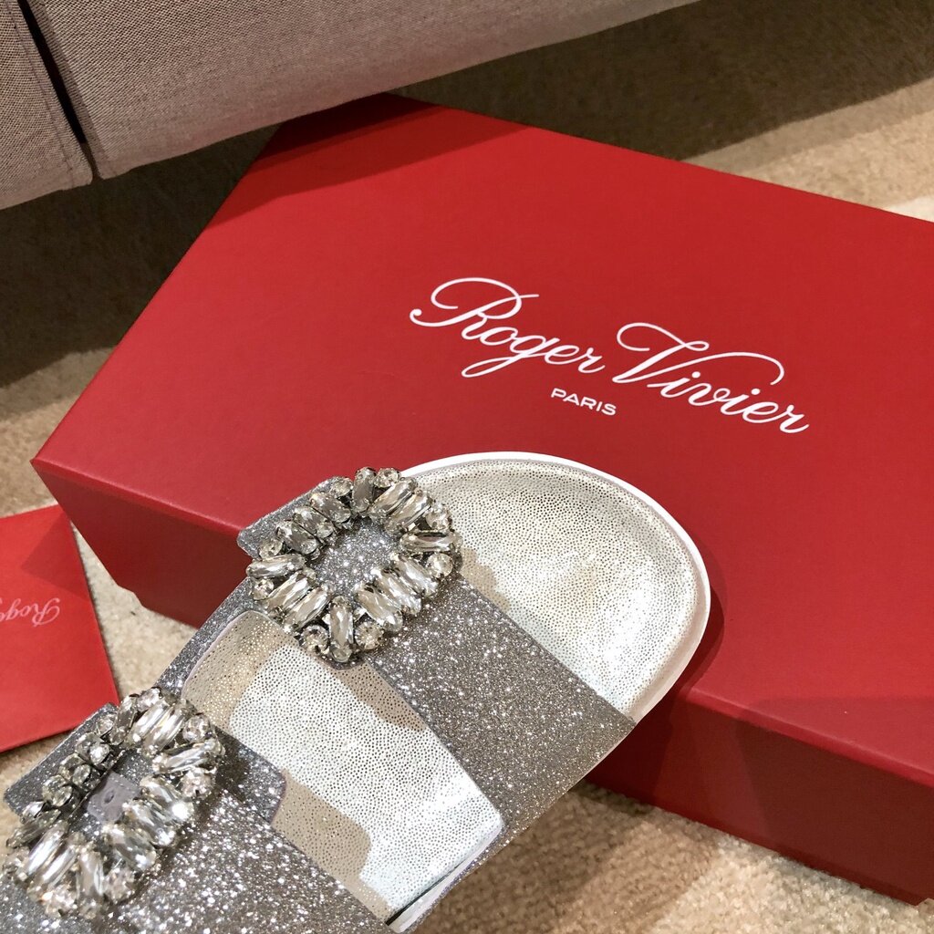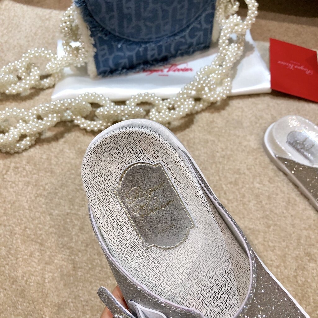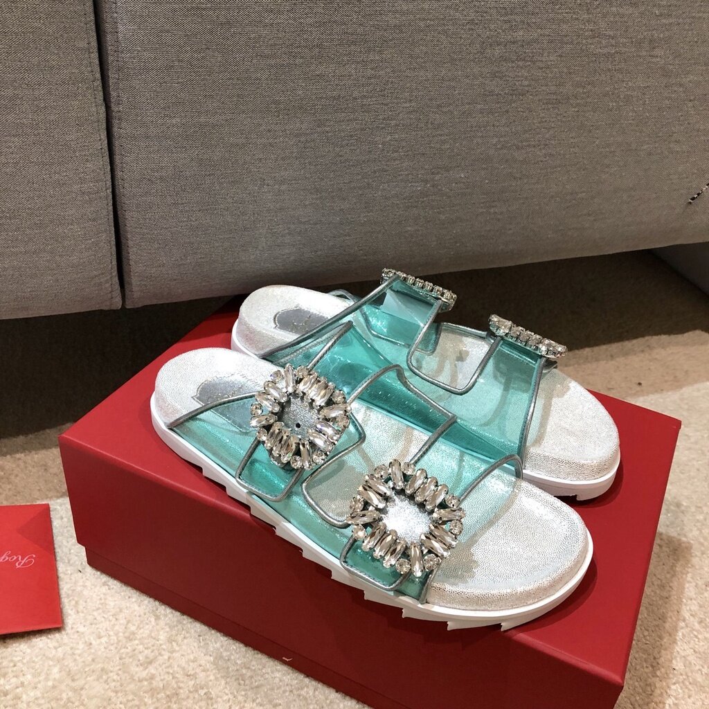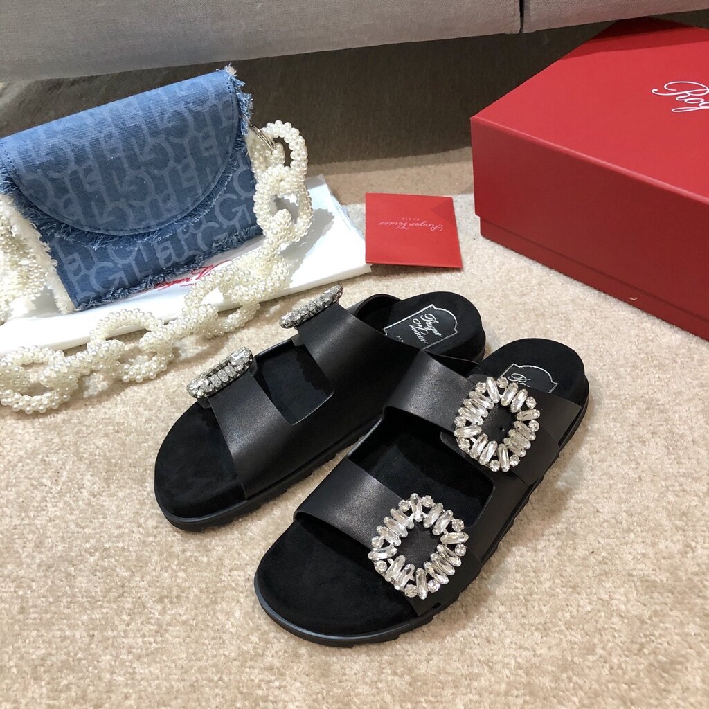 Roger vivierˉdouble rhinestone square buckle platform slippers women's fashion sandals 1031