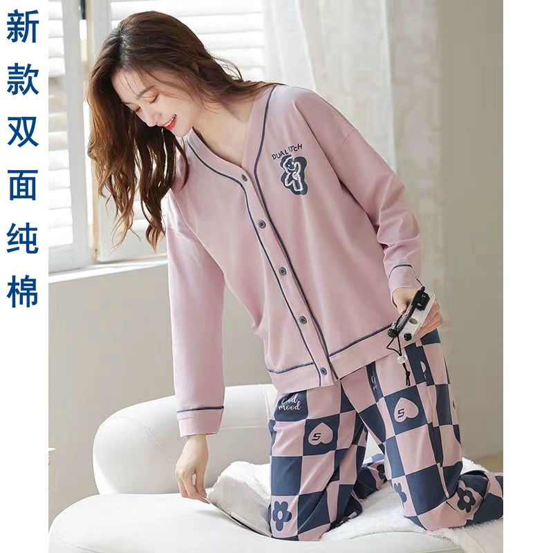 Ladies underwear High-grade 100 cotton pajamas women's spring and autumn long-sleeved new cotton kimono can be worn outside home service suit winter