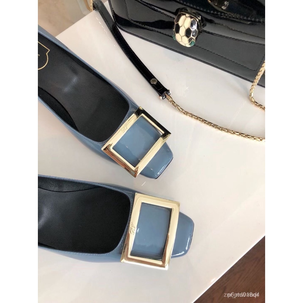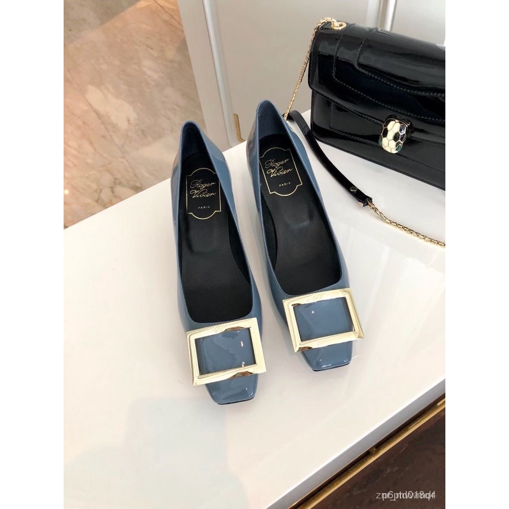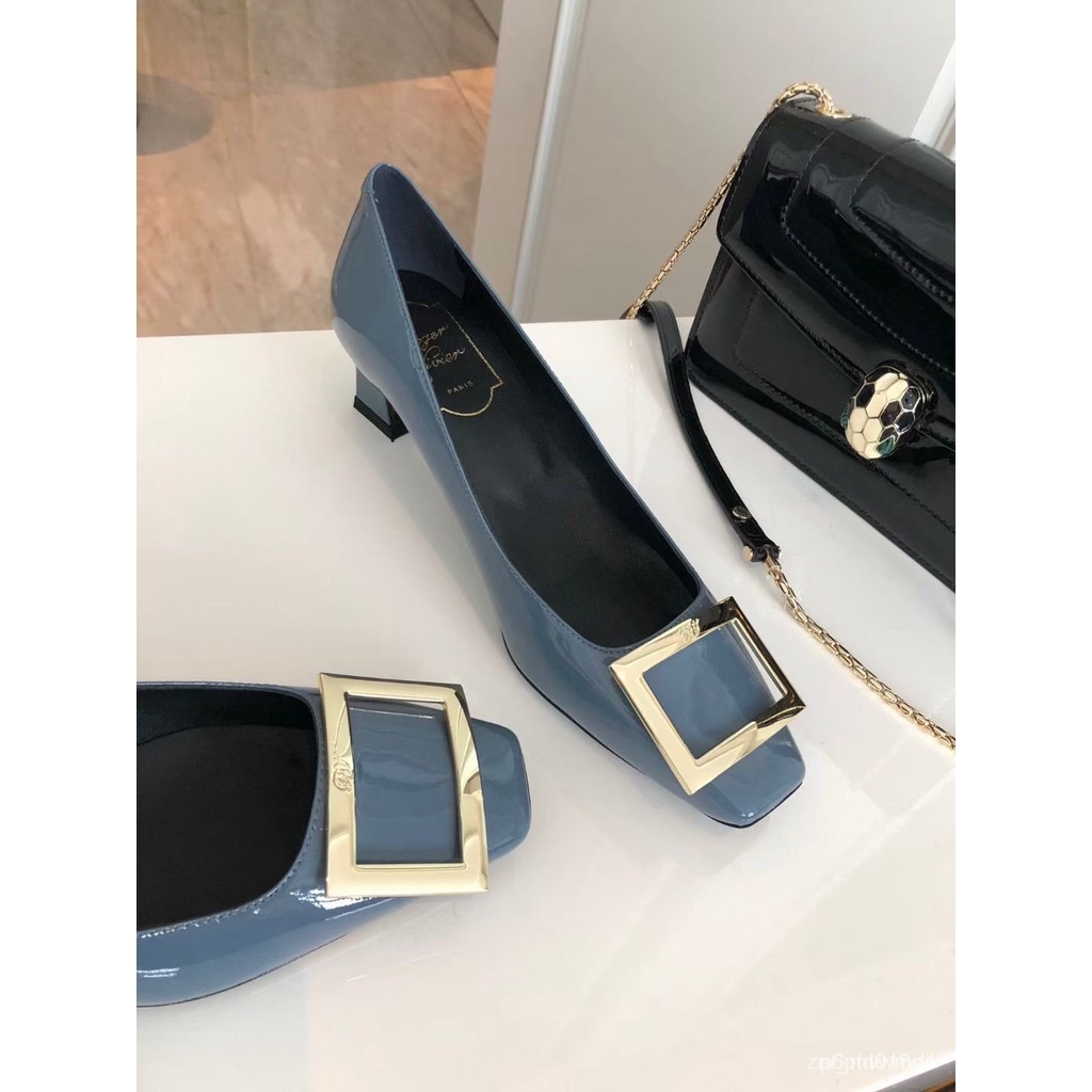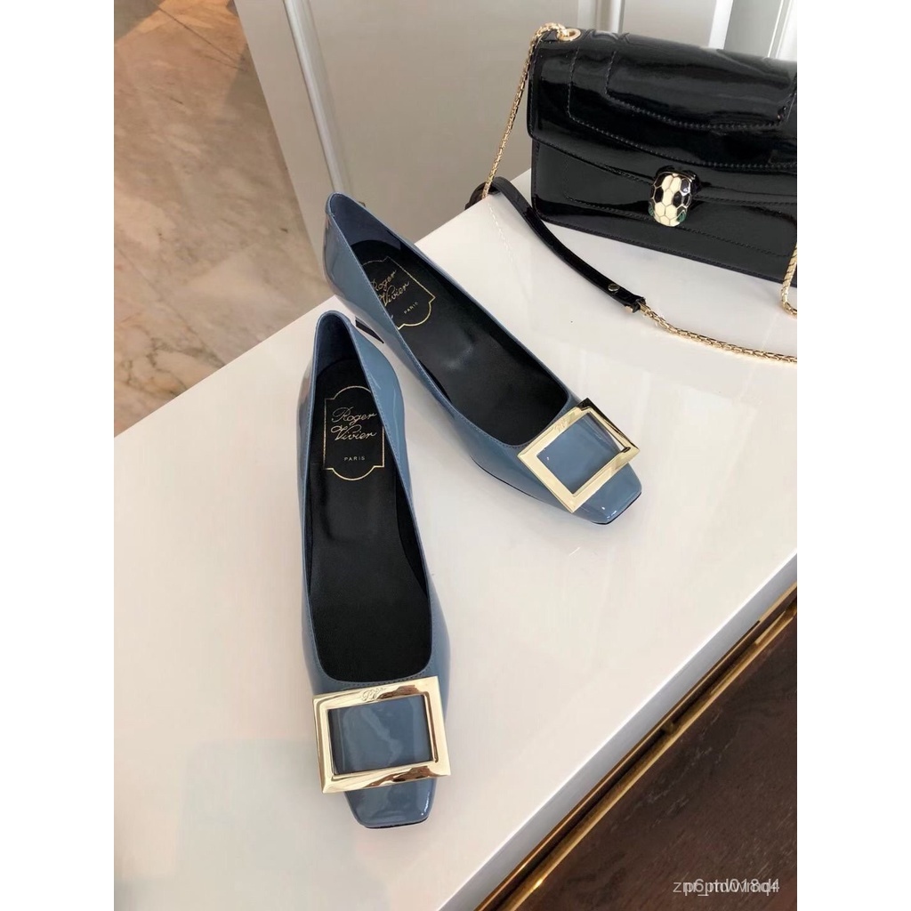 ✻ஐ☌ ▧Without box rv Roger vivier Square Head Bule Stiletto Shoes Women's High heel nude Exn0 Cd38 Super good lookin