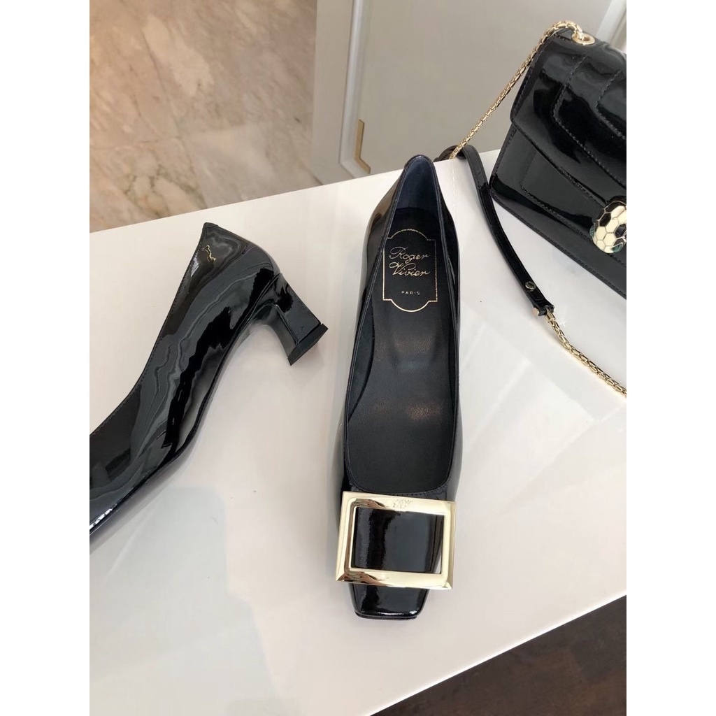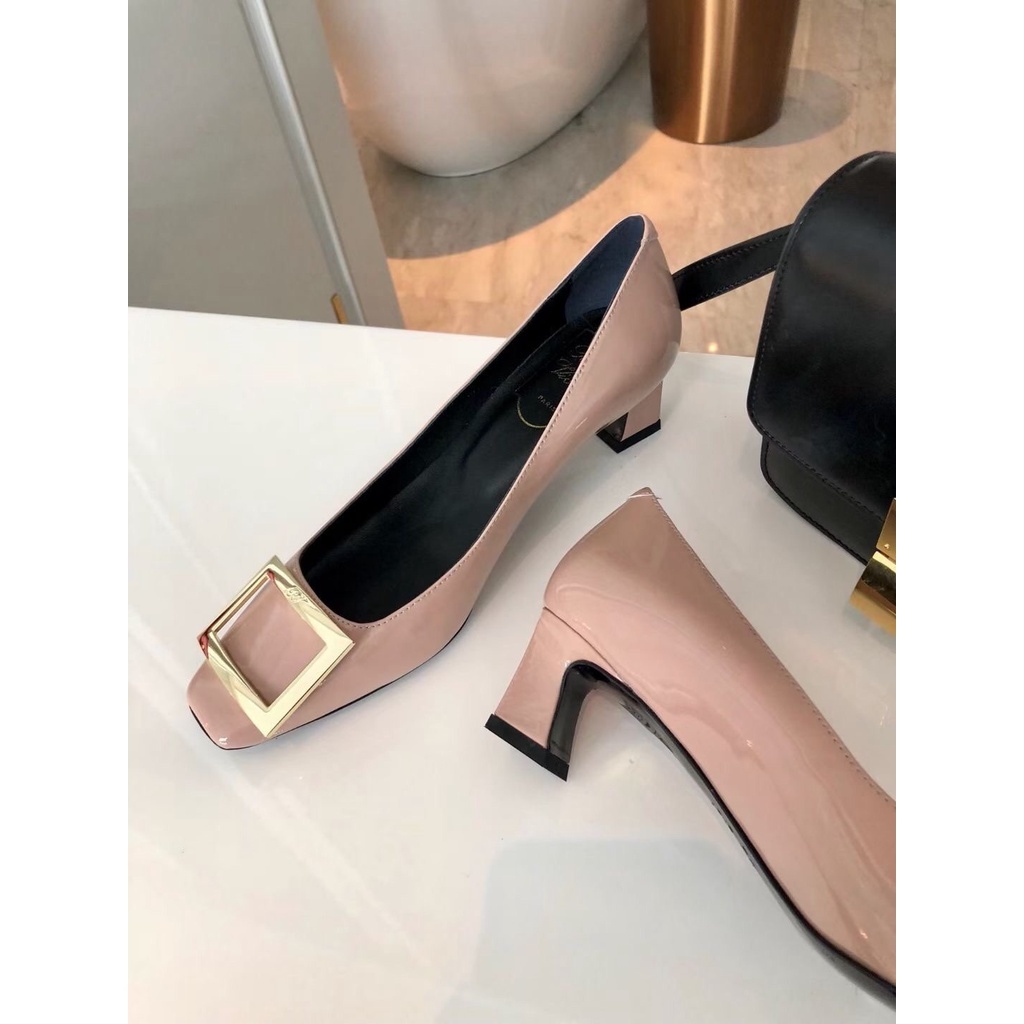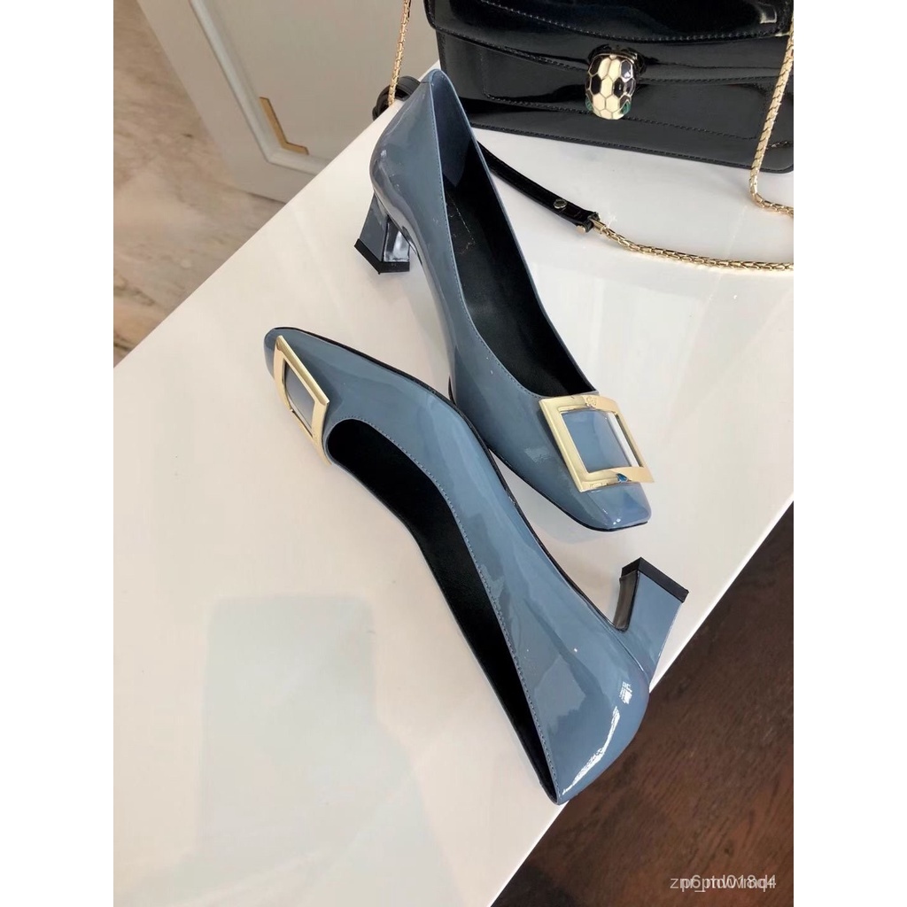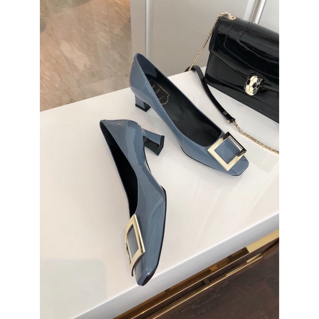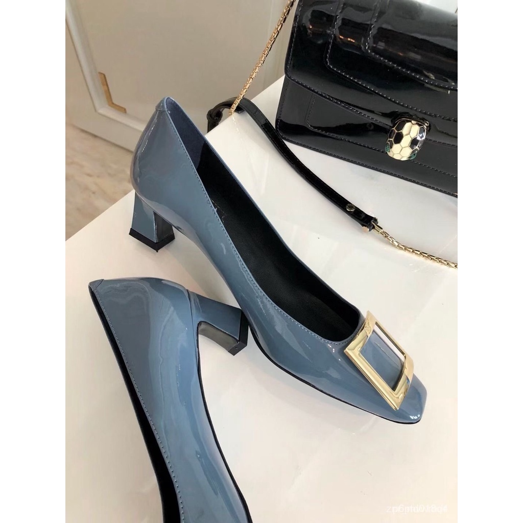 ✻ஐ☌ ▧Without box rv Roger vivier Square Head Bule Stiletto Shoes Women's High heel nude Exn0 Cd38 Super good lookin