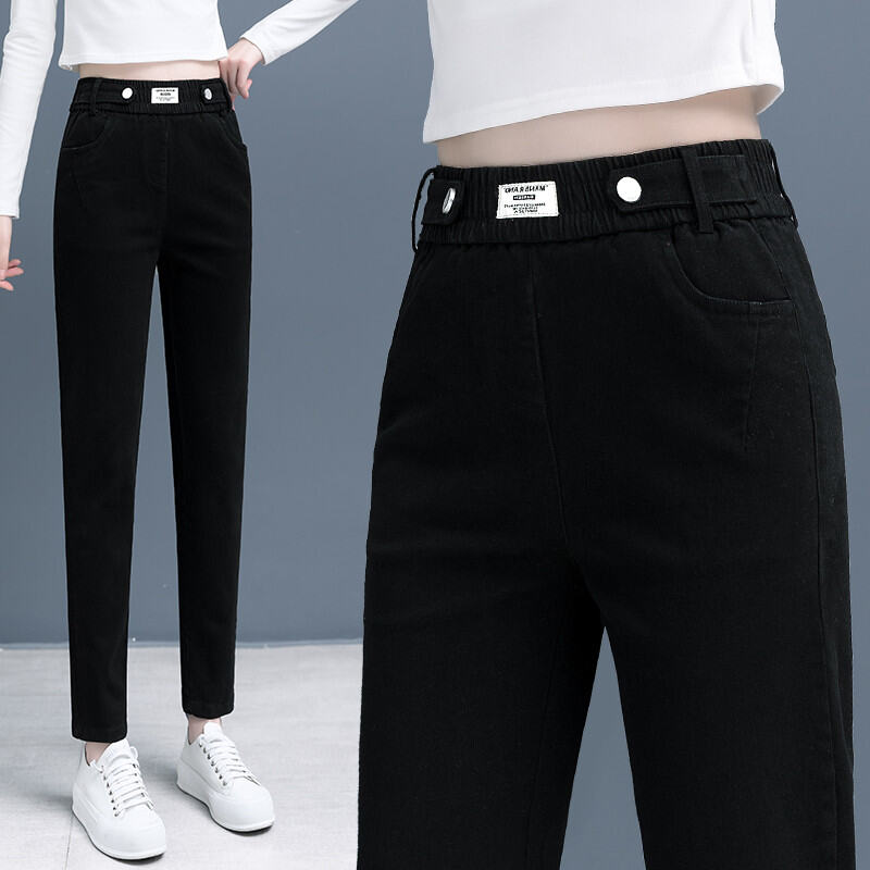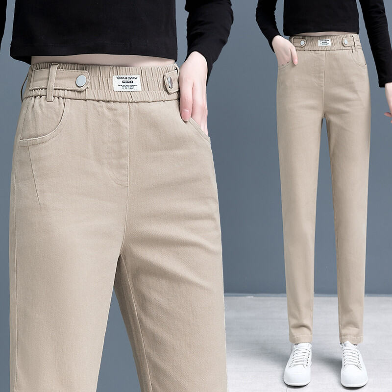 Cargo Jeans Women's Spring and Autumn 2022 New Elastic High Waist Casual Dad Pants Slim Looking Ankle-Tied Harem Pants