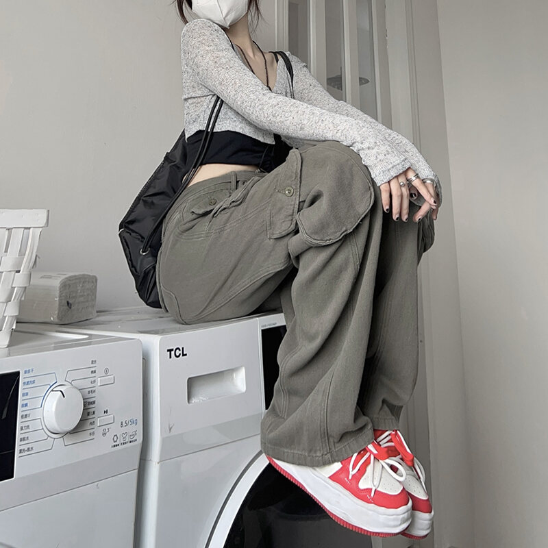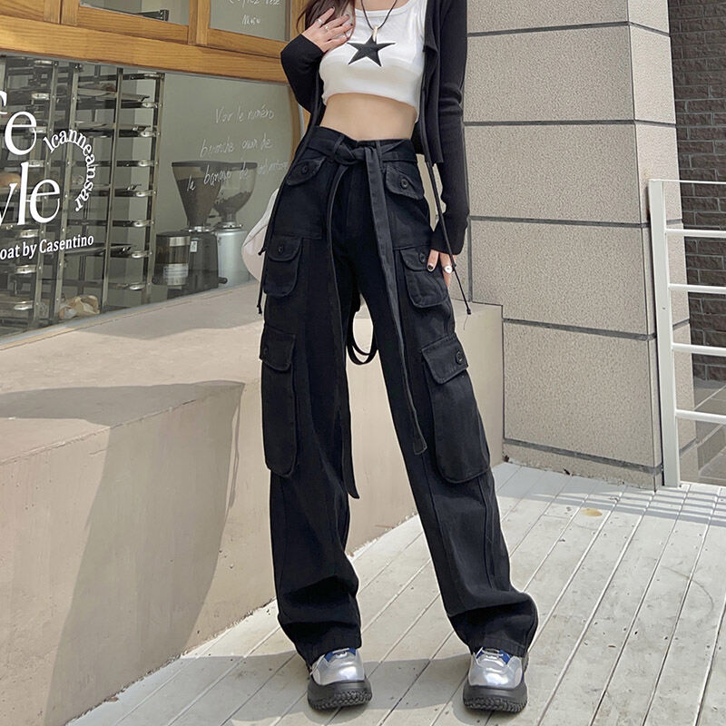 American Style Hip Hop Overalls Women's Summer Loose Straight Designed Hot Girl High Street Ins Casual Wide Leg Denim Trousers
