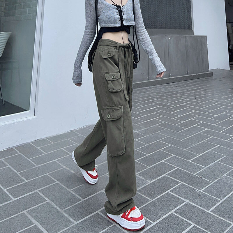 Shanji Thin Casual Pants 2022 Slim Looking High Waist Loose Stretch All-Matching Solid Color Shorts Tooling Style Straight-Leg Pants
