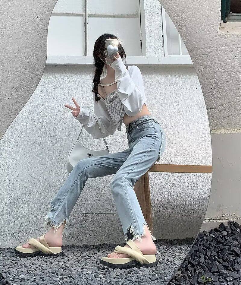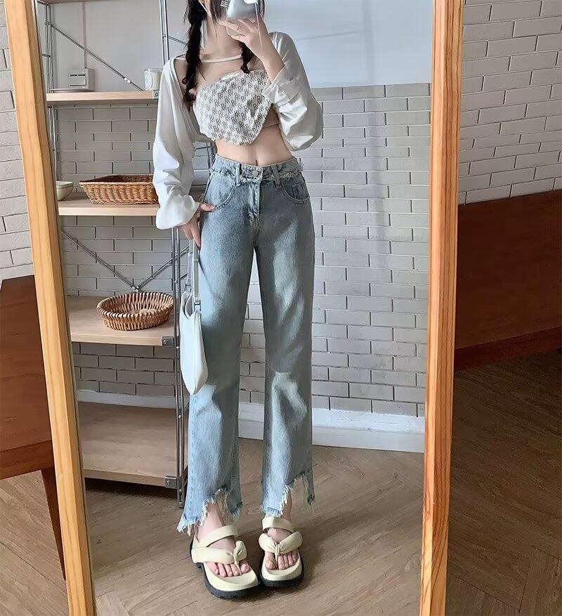 La Chebel White Straight-Cut Jeans Women's Ankle-Length Pants Spring and Autumn 2023 New Loose Pants Casual Cigarette Pants