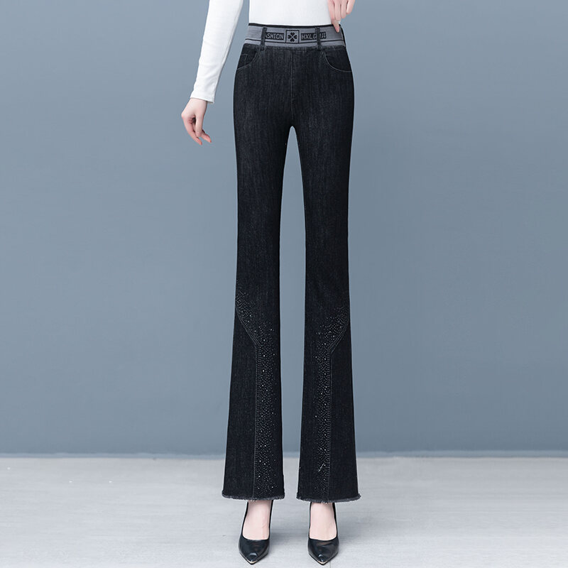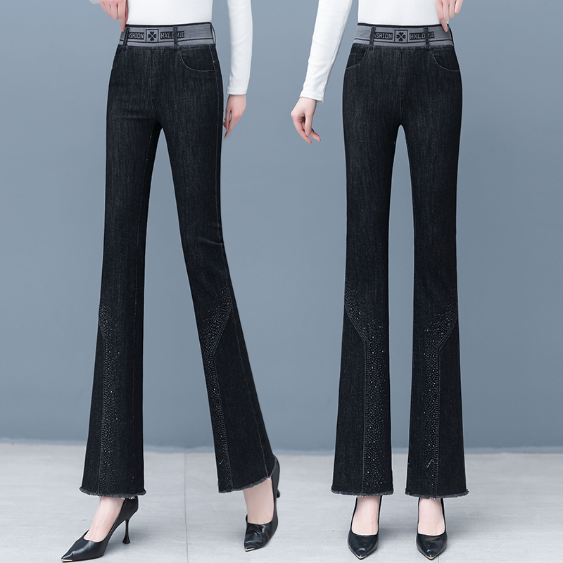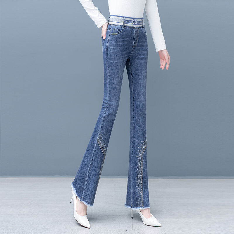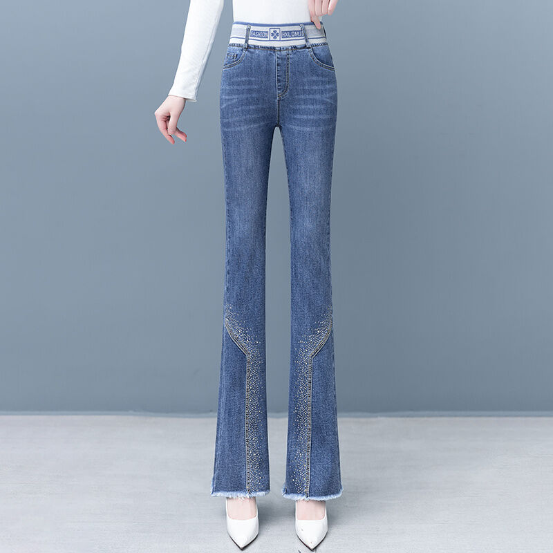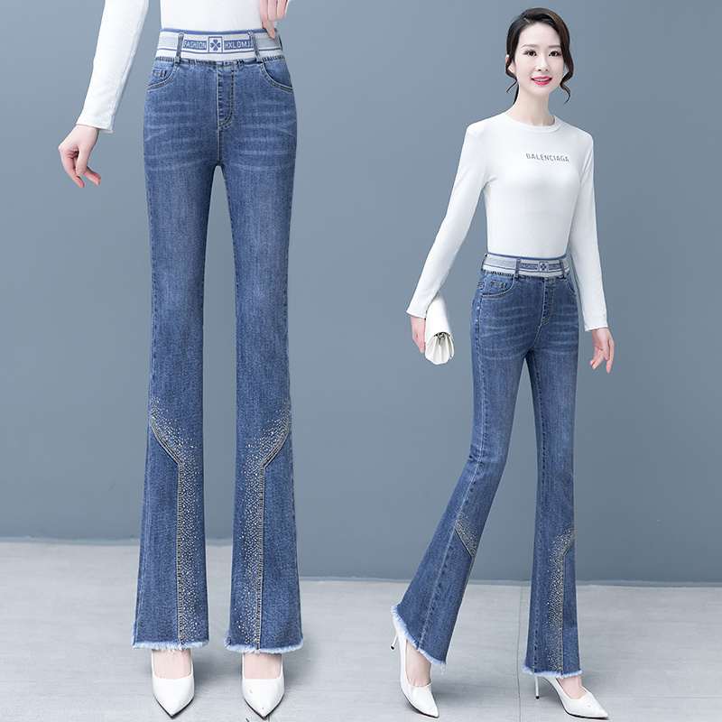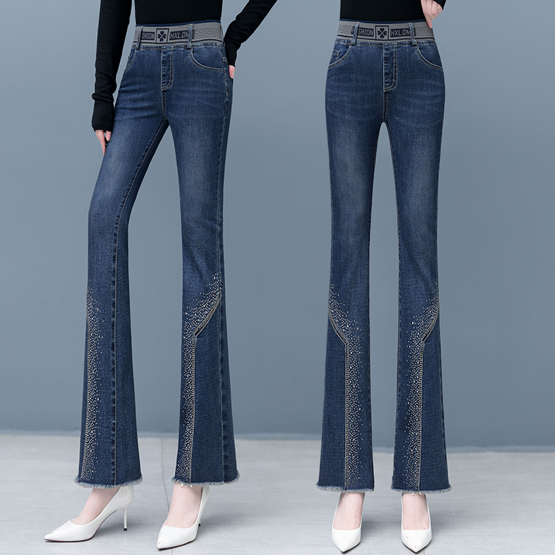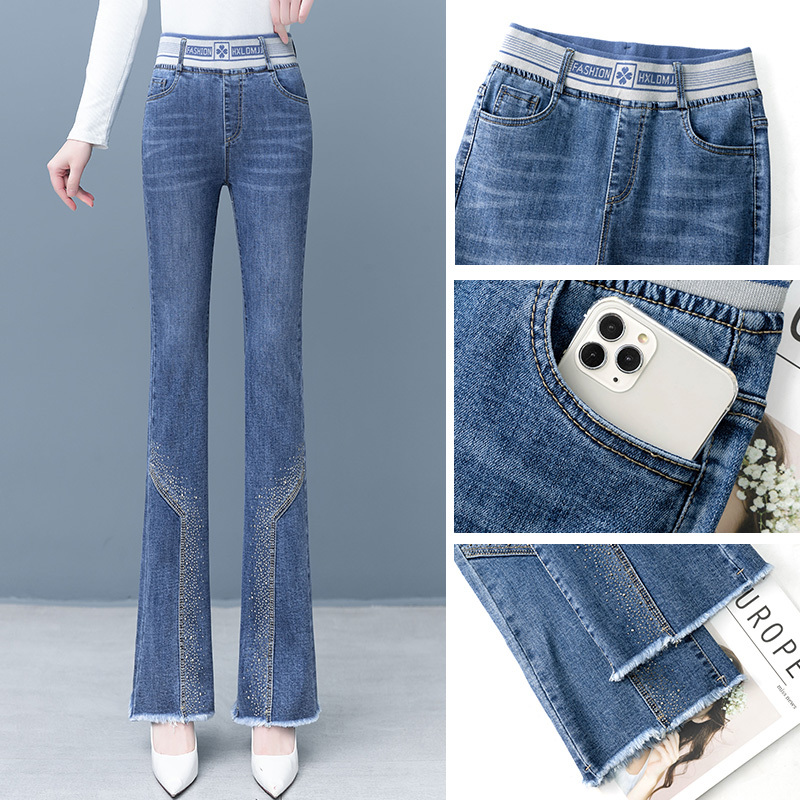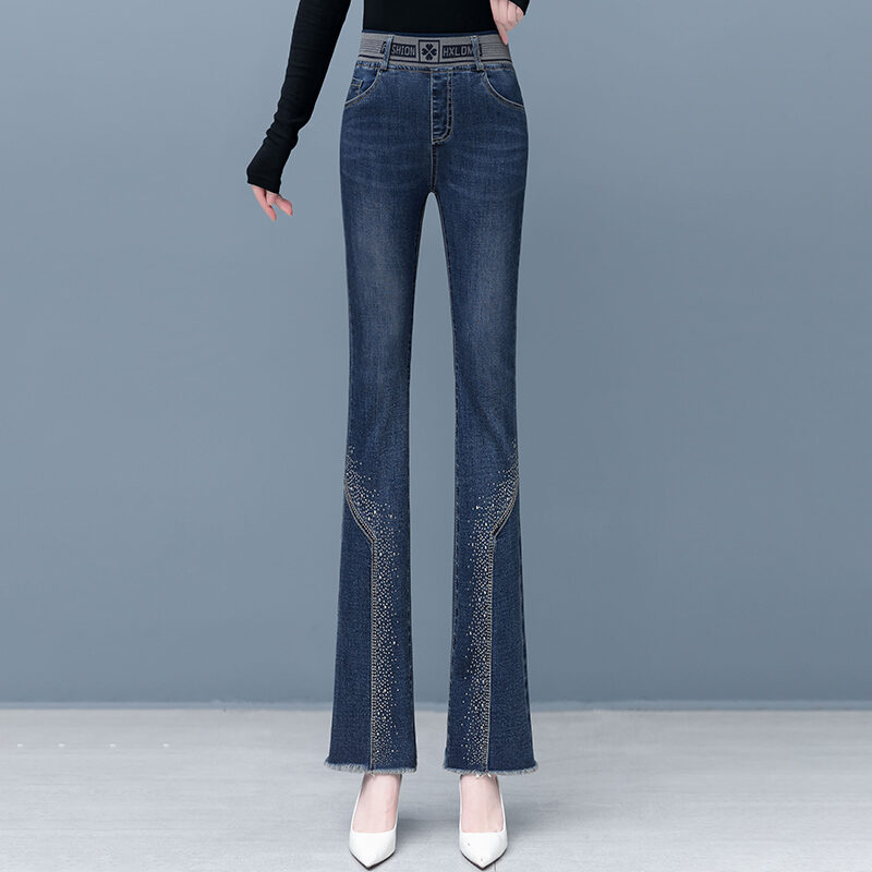 Fashionable Fashionable Elastic Waist Micro-Cut Jeans Casual Women's 2023 Spring and Autumn Stretchy High Waist Slimming Hot Drilling Pants