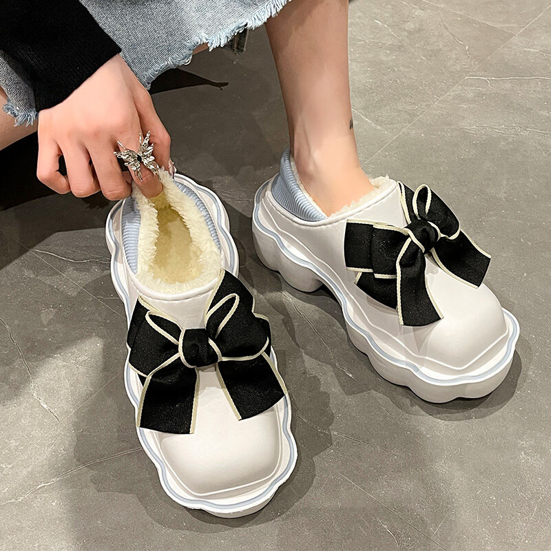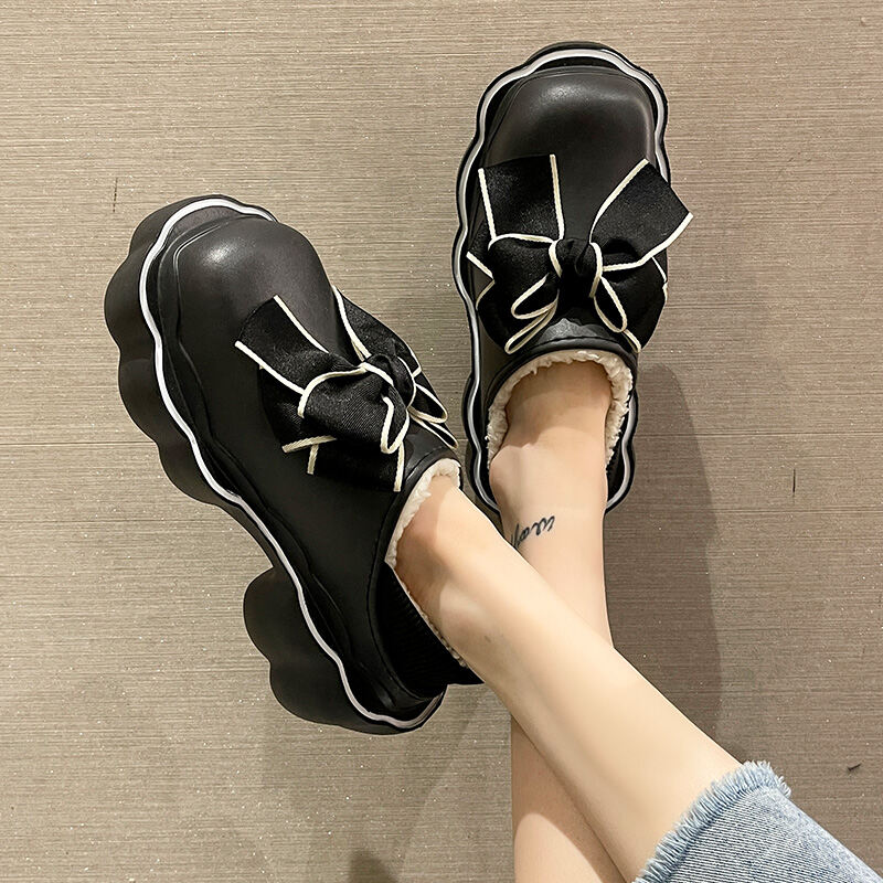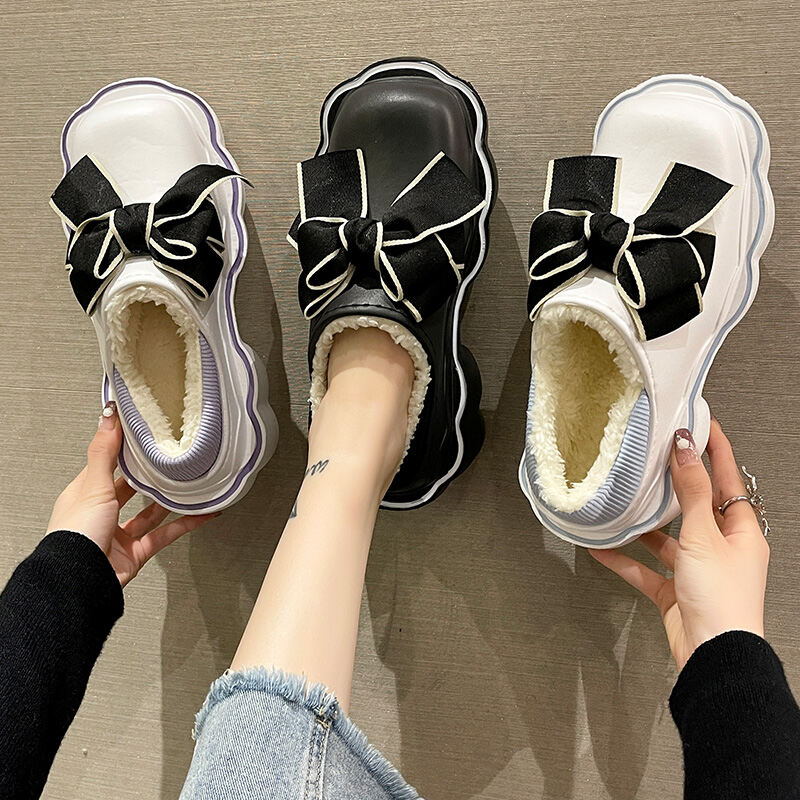 Bowknot Bag Cotton-Padded Shoes Women's Winter 2022 New Outdoor Fashion Velvet Padded Waterproof Thick Sole Indoor Cotton Slippers