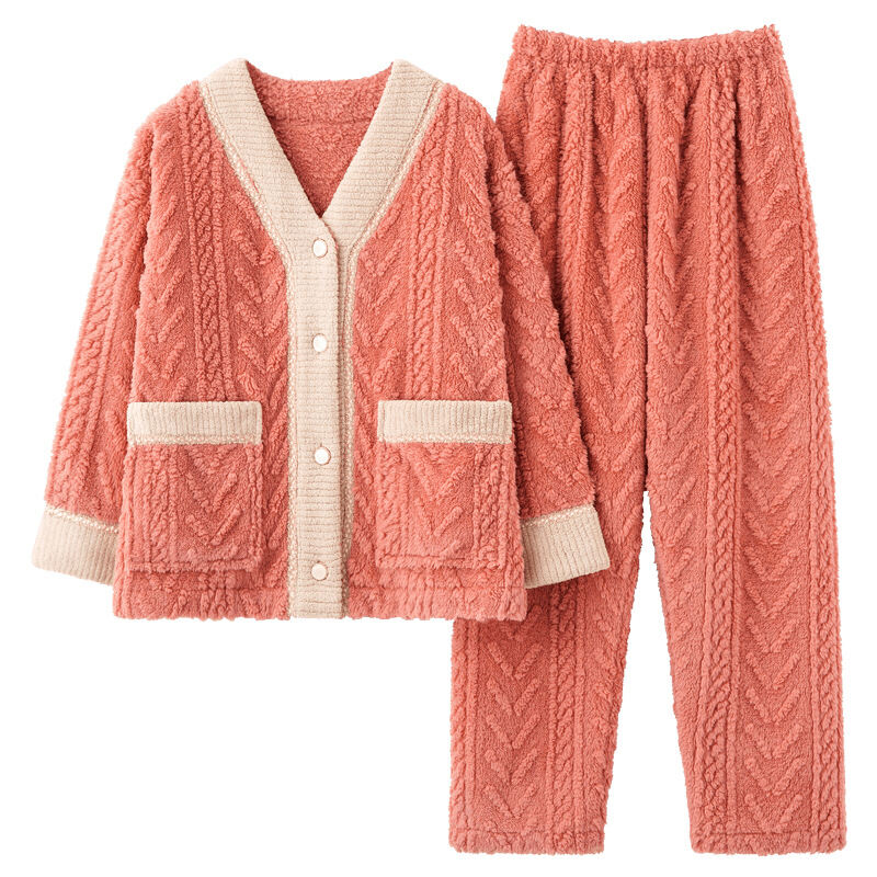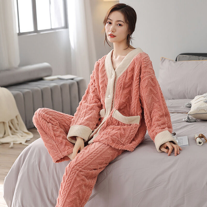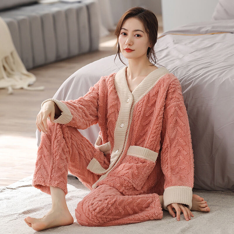 Japanese Pajamas Women's Winter Coral Fleece Fleece-Lined Thickened Pajama Pants Warm Outerwear Homewear Suit Flannel