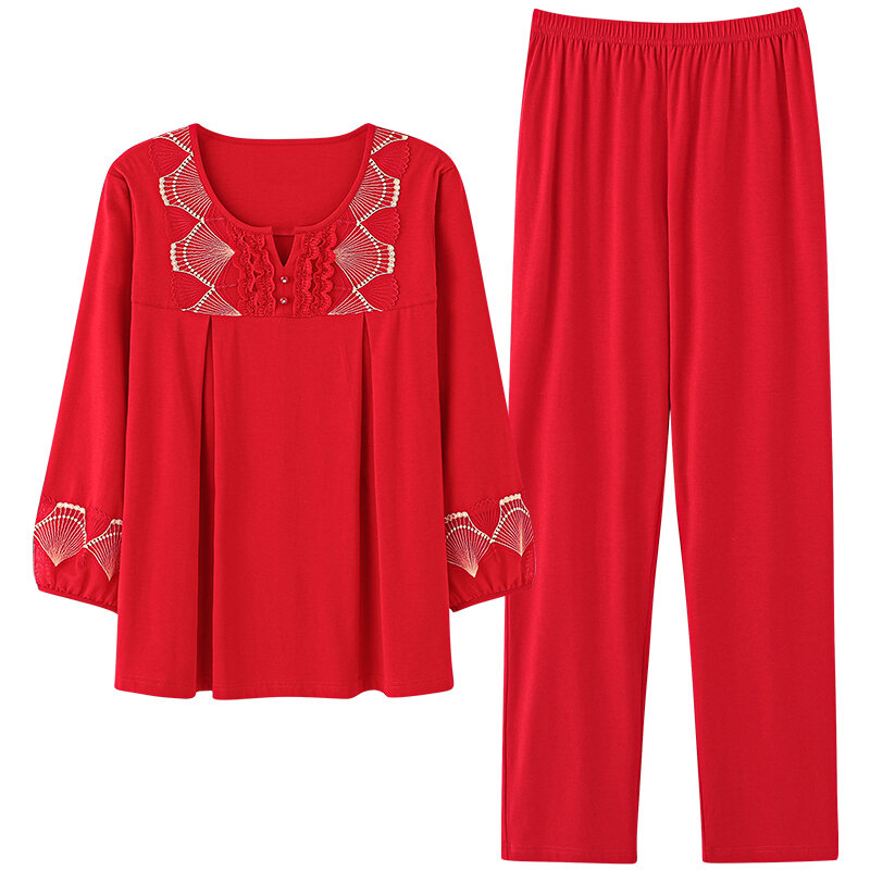 Pajamas Women's Spring and Autumn Long-Sleeved Red Animal Year Middle-Aged Mother Large Size Autumn Wedding Homewear Suit