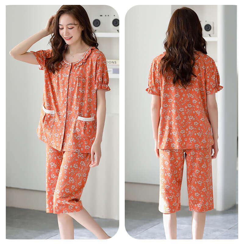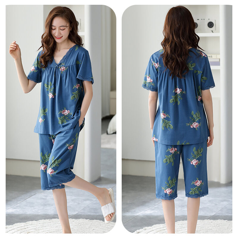 Modal Pajamas Women's Summer Short-Sleeved Capri Pants 2023 New Arrival Printed Homewear Loose Large Size Suit
