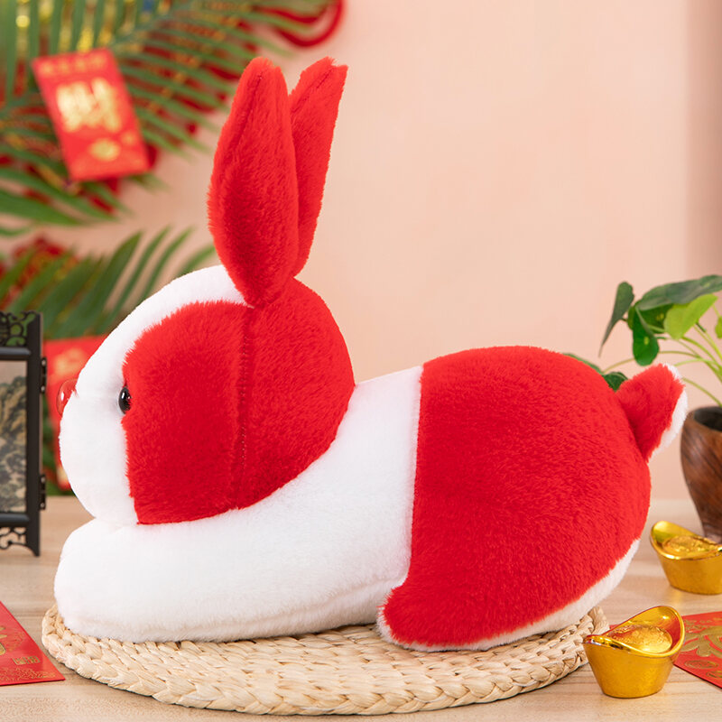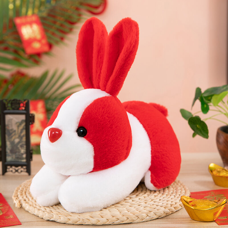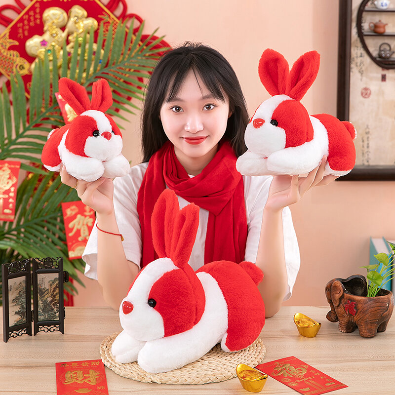 Simulation Small Lying Rabbit Red Plush Toy Rabbit Doll Annual Meeting Mascot Chinese Zodiac Sign of Rabbit Doll Annual Meeting Activity
