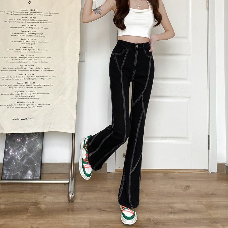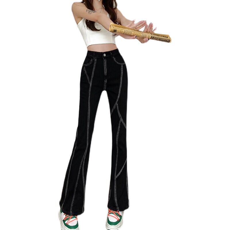 High-Looking Fashion Irregular Women's Slim Casual Pants 2023 Spring and Autumn Western Style Matching Small Denim Bell-Bottom Pants
