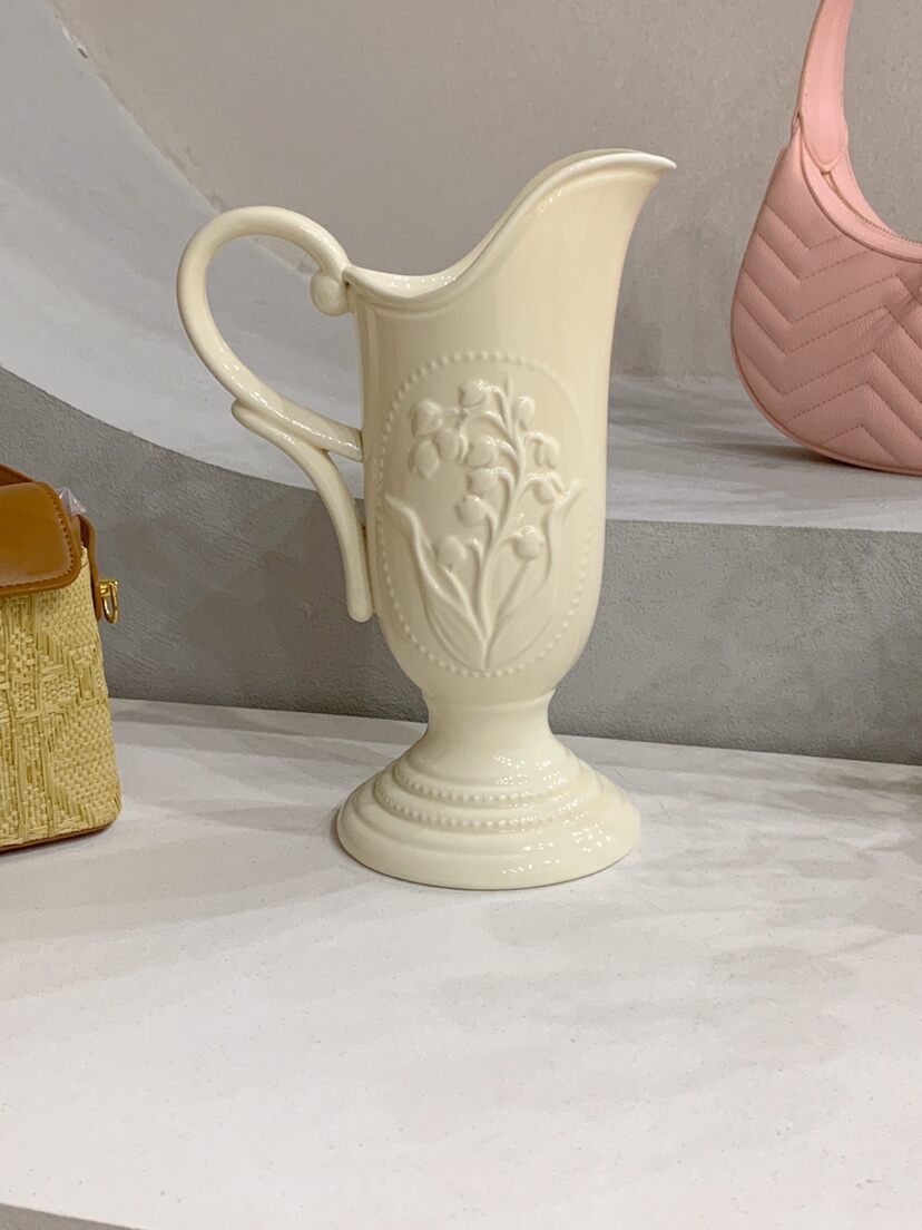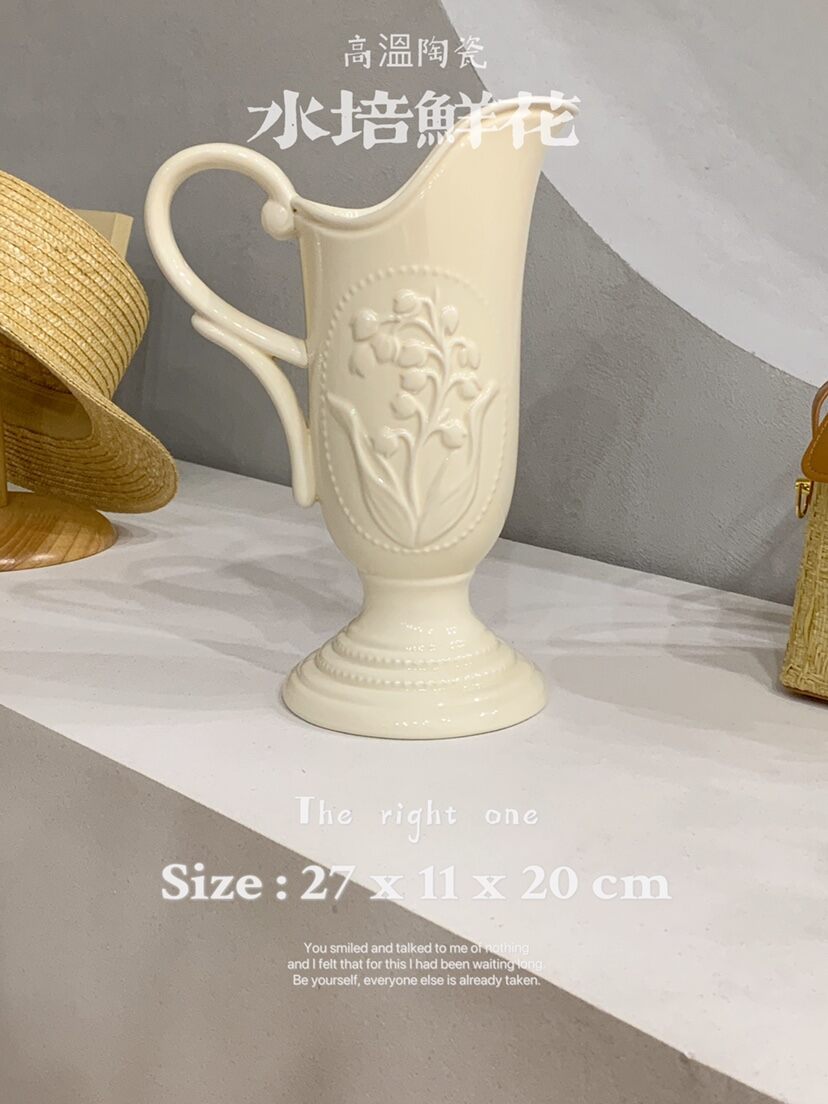 Qianxi Porcelain Hydroponic Flowers Ice Crushing Blue Rose Vintage Ins Style Cream Ceramic Pot Lenox Vase Ornaments