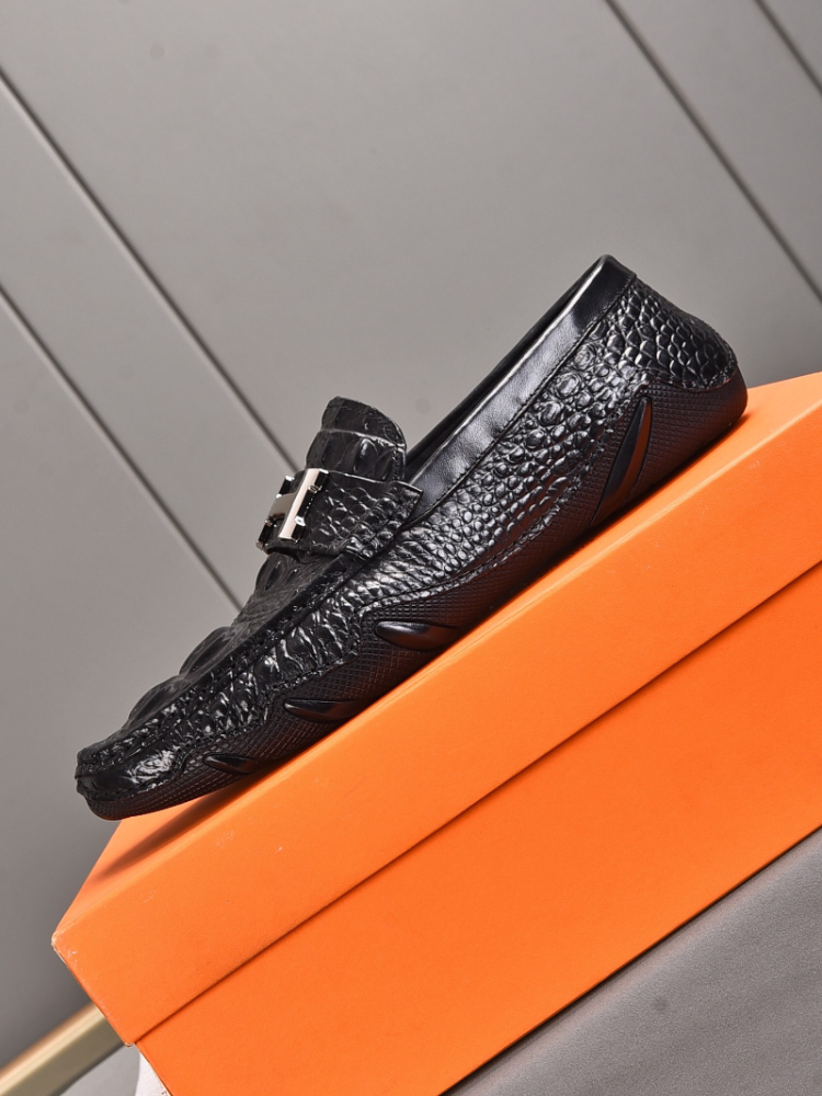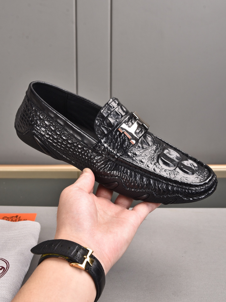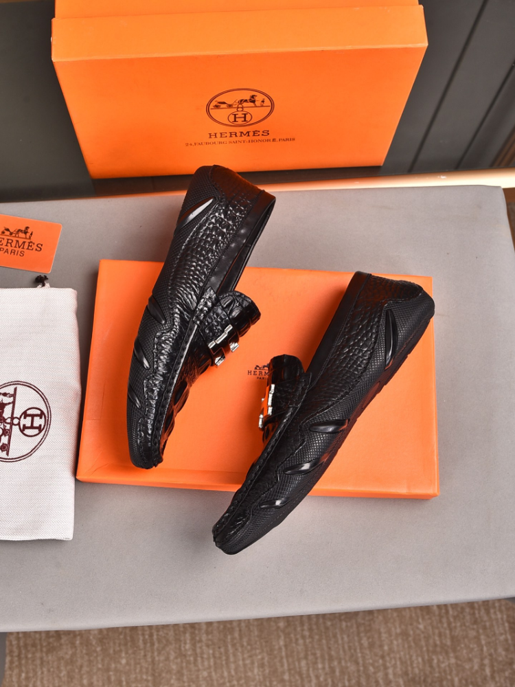 (Gift box packaging)Hermesˉ Men High Quality Genuine Leather Loafers Men Casual Shoes Slip on Men's Flats Fashion Men Shoes Male Driving Shoes