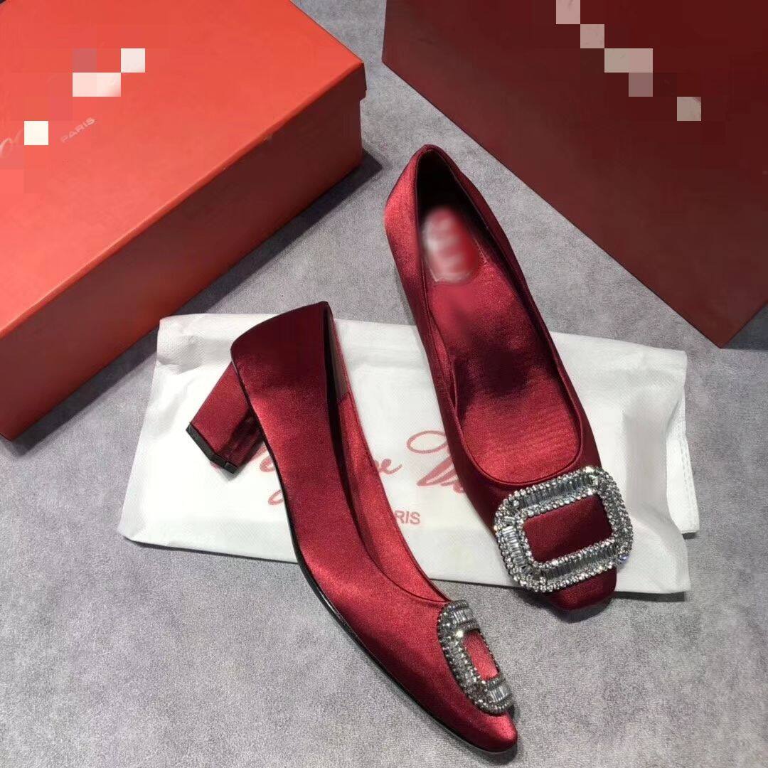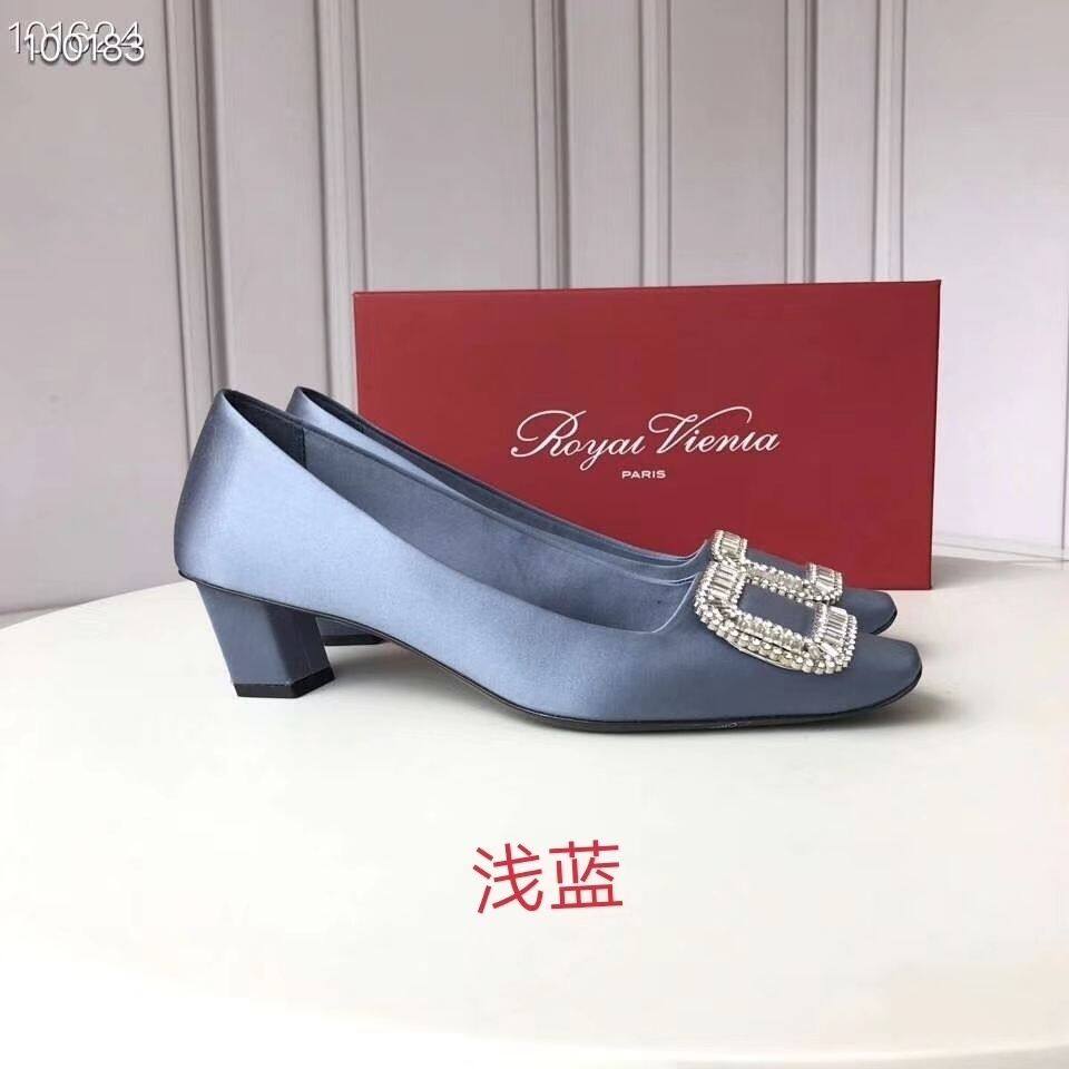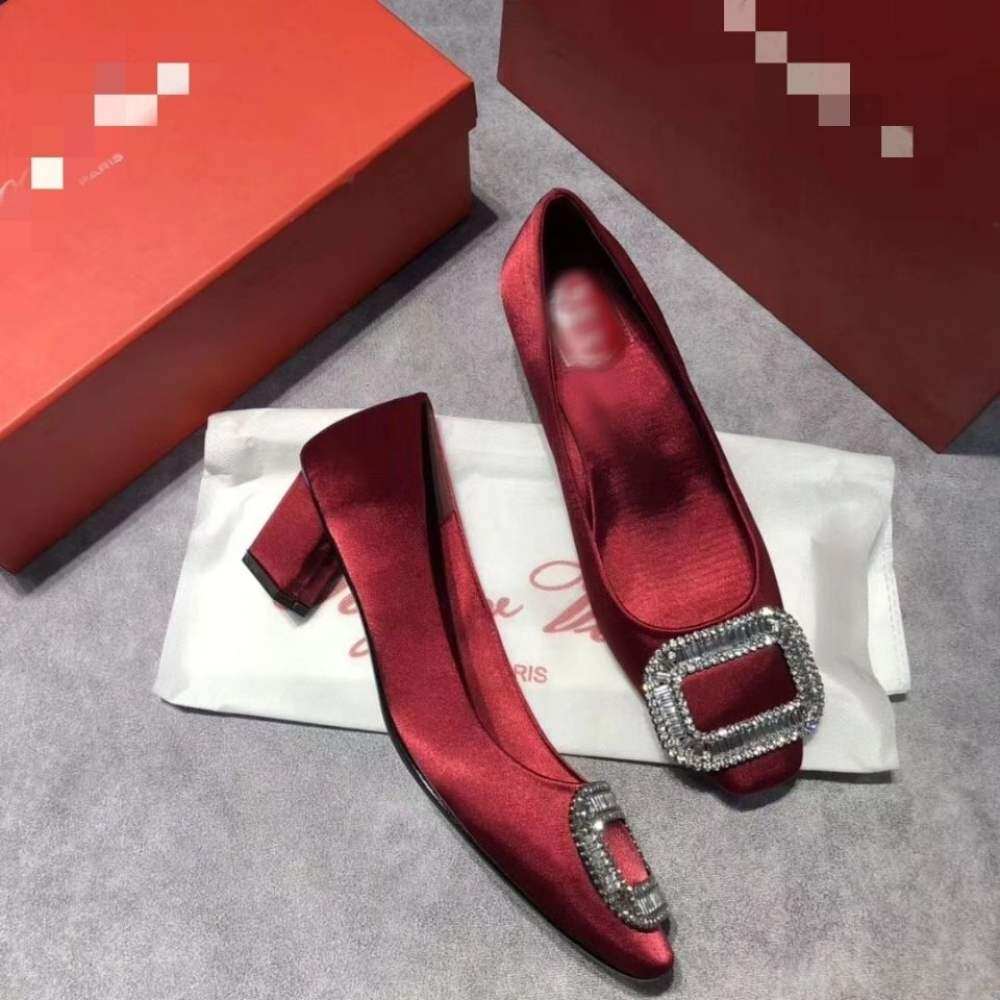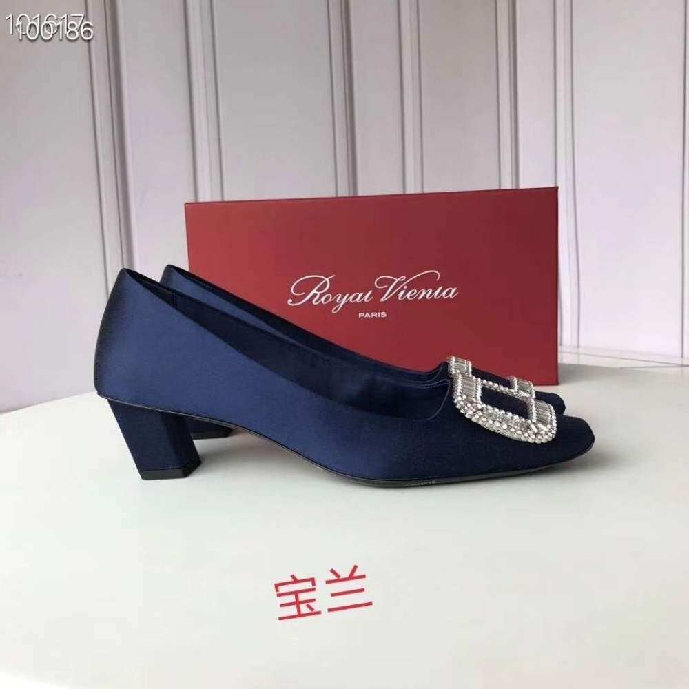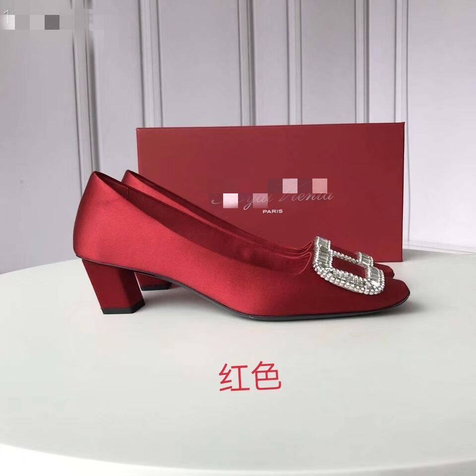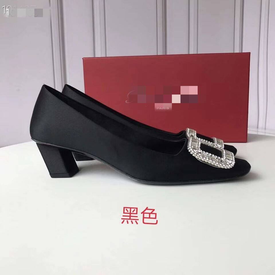 Spring and Autumn 2020 Roger vivierˉNew Women's Shoes High Heels Coarse Heels Shallow Mouth Versatile Single Shoes