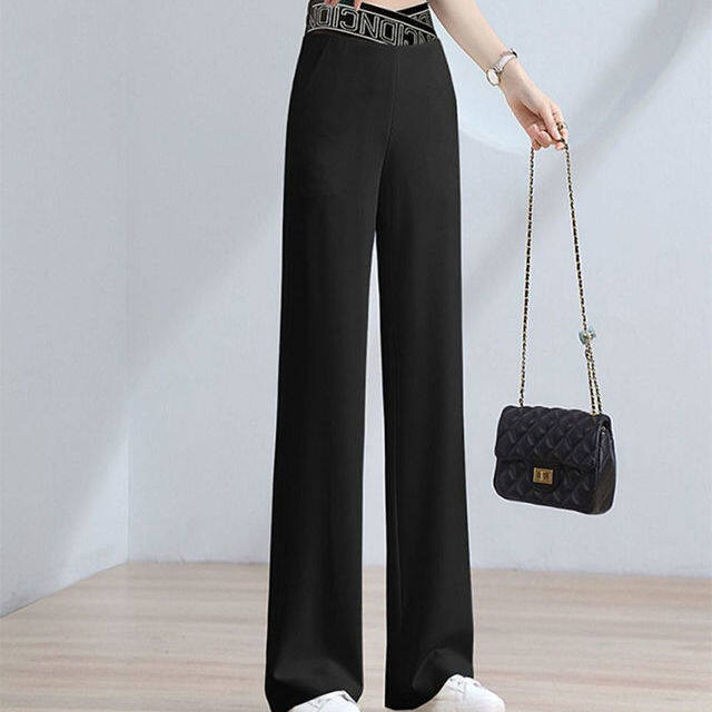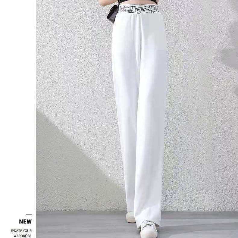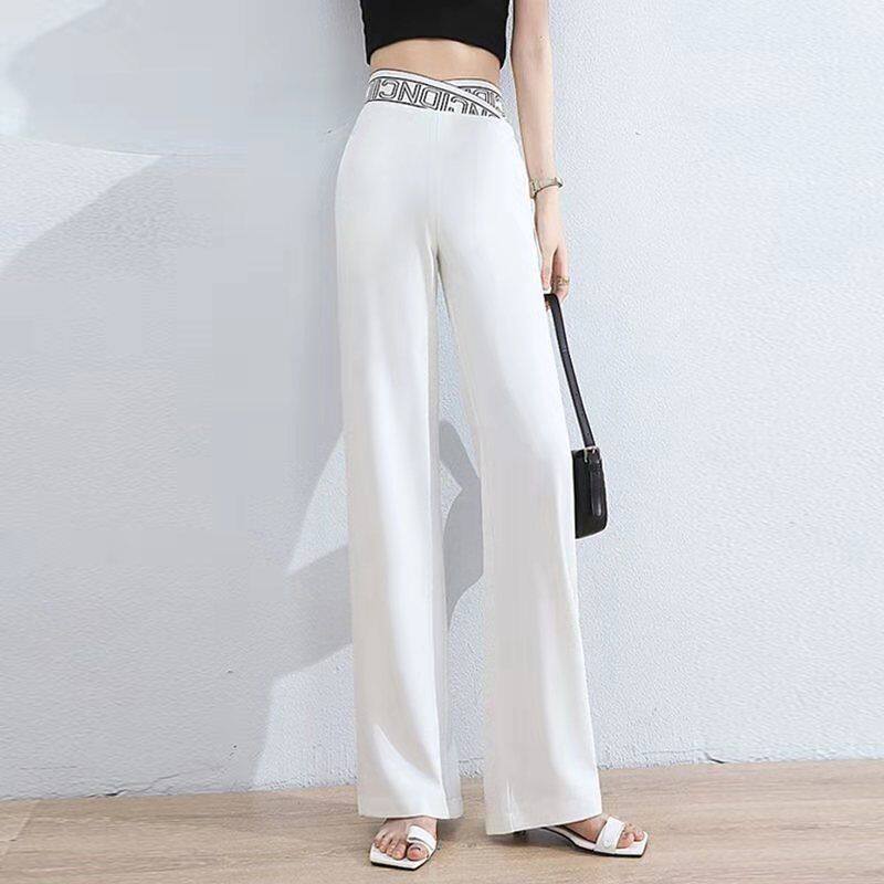 COCONI Stretch Wide Leg Pants Women New High Waist Drop Letter Printing Loose Slim Straight Leg Pants