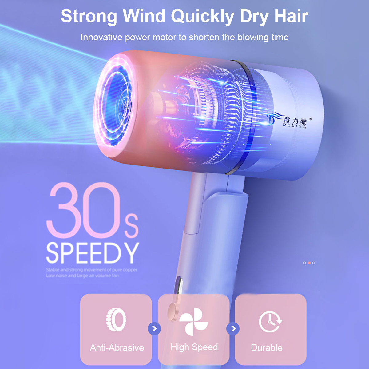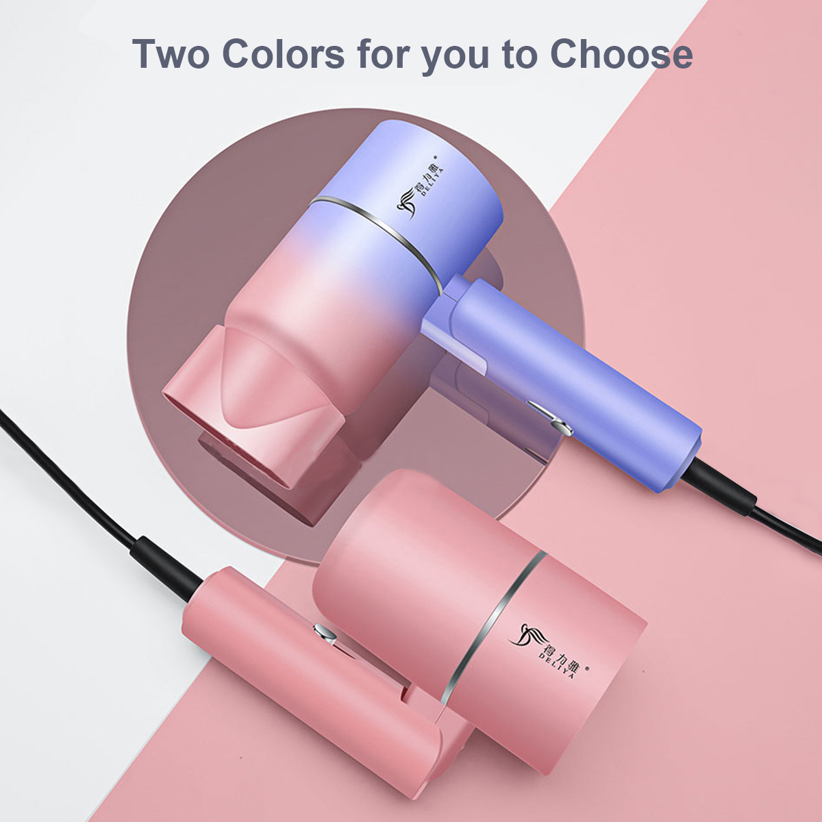 DELIYA Foldable Mini Hair Dryer Blue light Negative ion Hairdryer 1000W Fast Dry Strong Wind 3 Modes Hair Blower