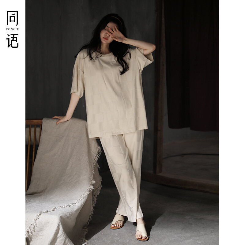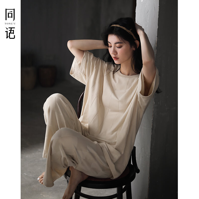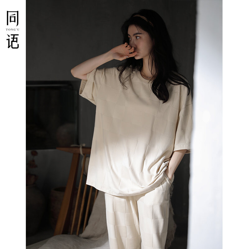 Tongyu [Cool Cotton] Pajamas Women's Summer Jacquard Short Sleeve Trousers Suit Women's Outerwear Thin Homewear