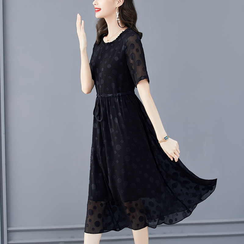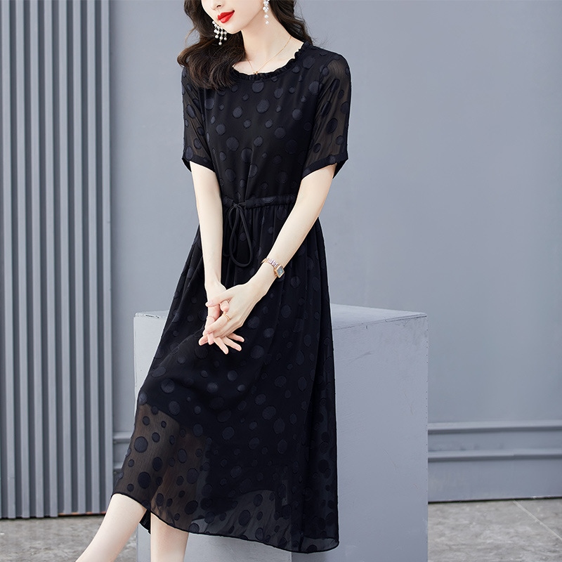 mer new black silk dress female noble lady high-end foreign temperament m slimg mulberry silk C423ﺴஐ☄