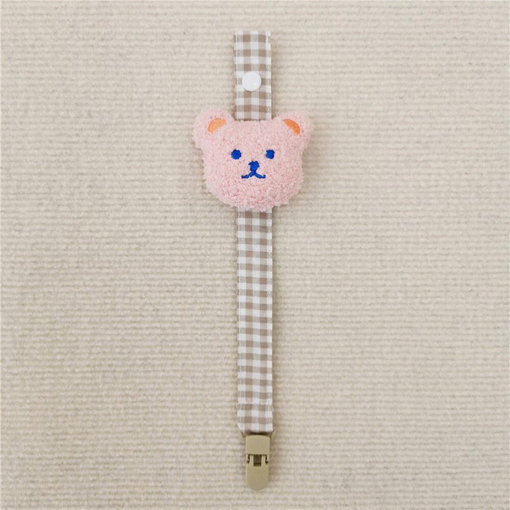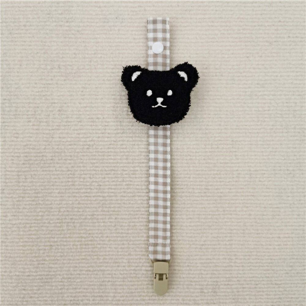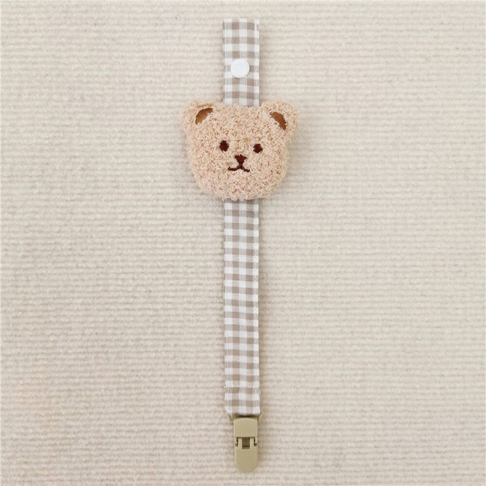 The nipple chain is clamped in the baby's skirt to prevent the nipple from getting dirty on the ground.