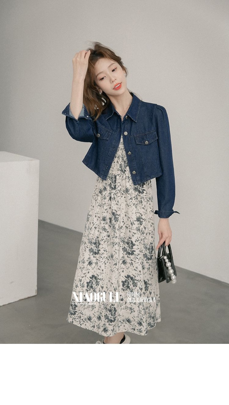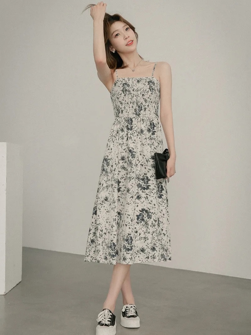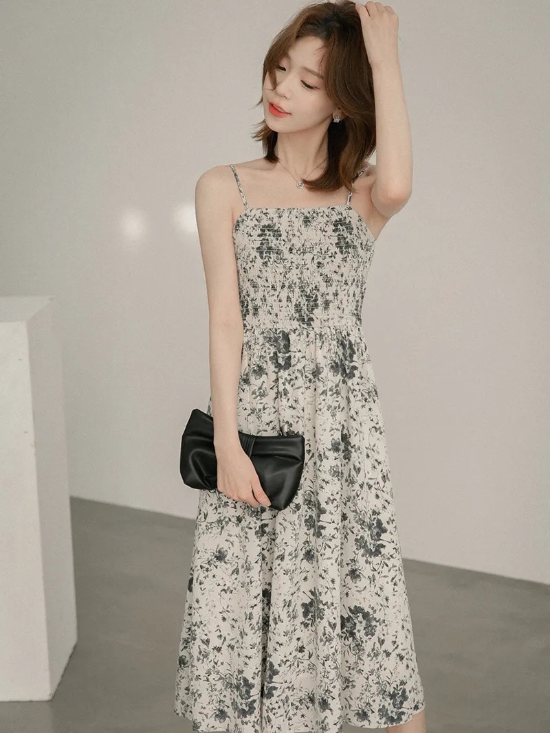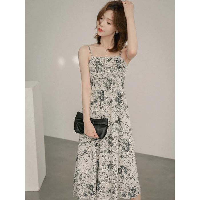 № Small grain suspender dress women's 2023 spring new high-end French floral skirt small slim skirt