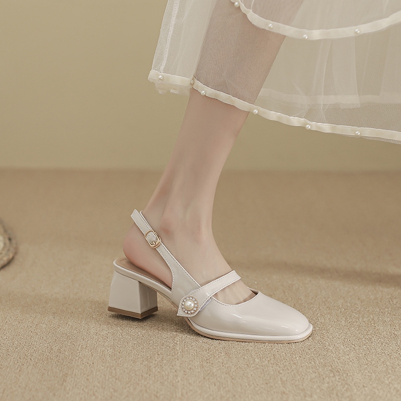 Closed Toe French Style Women's Sandals New 2023 Women's Shoes Summer R Chunky Heel High Heels Fairy Style Mid Heel Mary Jane