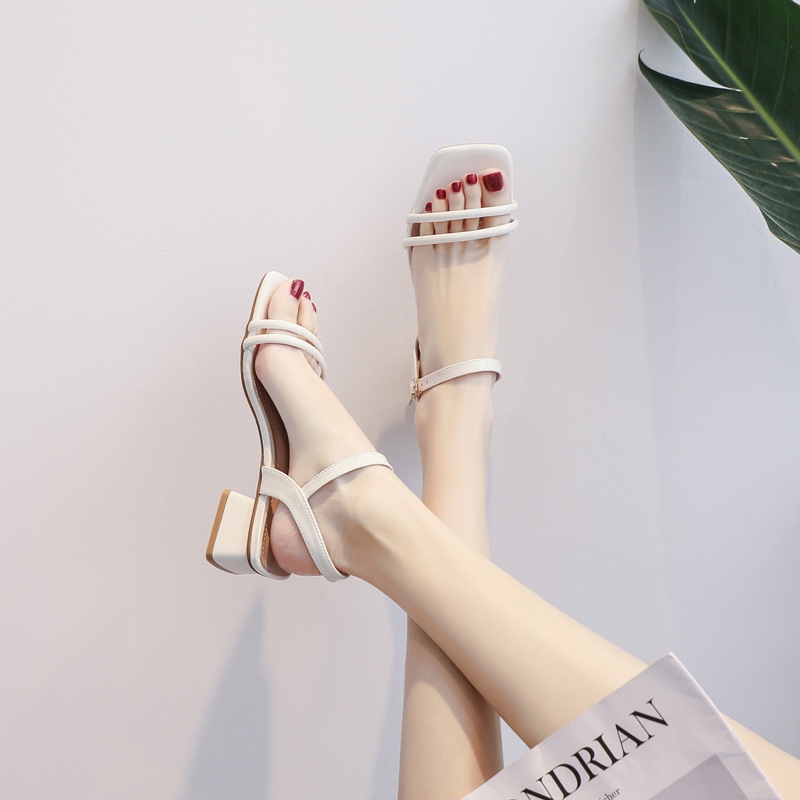 Fashion s women's 22 new summer all-match one-word buckle simple fairy style chky high-heeled shoes tide C427✌◈❀