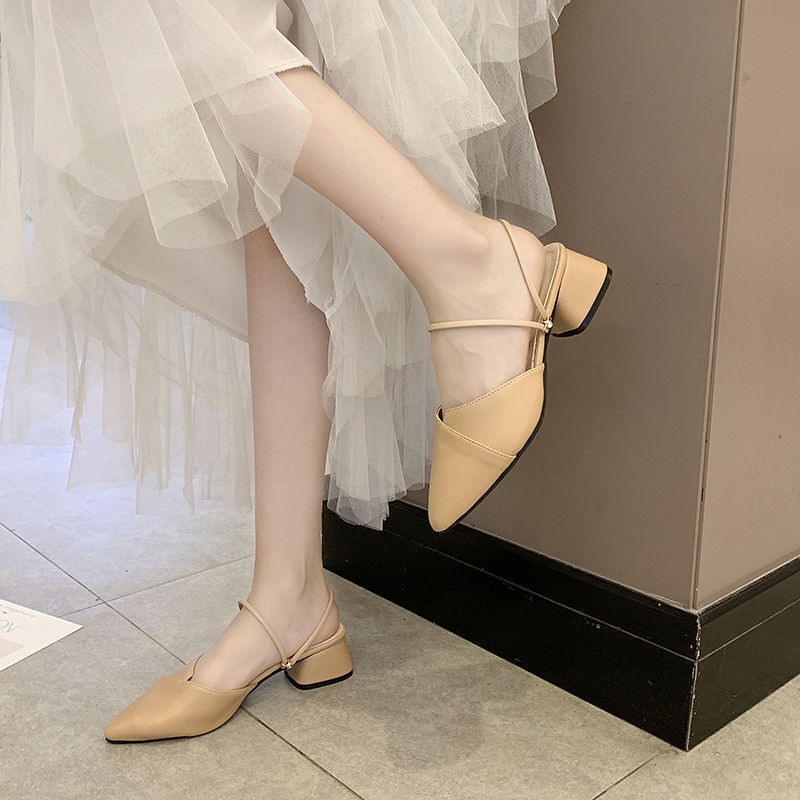 Stiletto Heel Fairy Style Half Slippers Pointed Toe Super Hot All-Match Closed Toe Sandals 2023 Internet Celebrity French High Heels Summer New