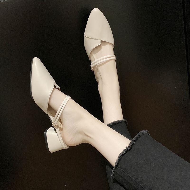 Fashion s women's 22 new summer all-match one-word buckle simple fairy style chky high-heeled shoes tide C427✌◈❀